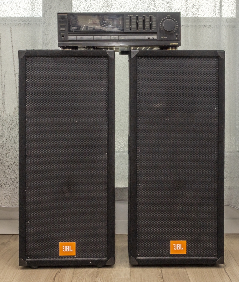 2 boxe x 100W RMS 3 cai 75x33x28 cm, 17 kg fiecare.