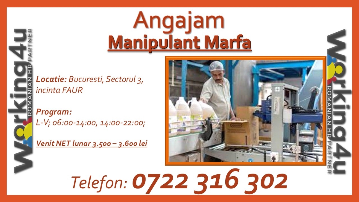 pentru clientul nostru, companie romaneasca producatoare de produse de curatenie si igiena cu fabrica situata in sectorul 3, Bucuresti, suntem in cautarea unui nou coleg pentru postul de manipulant marfa.