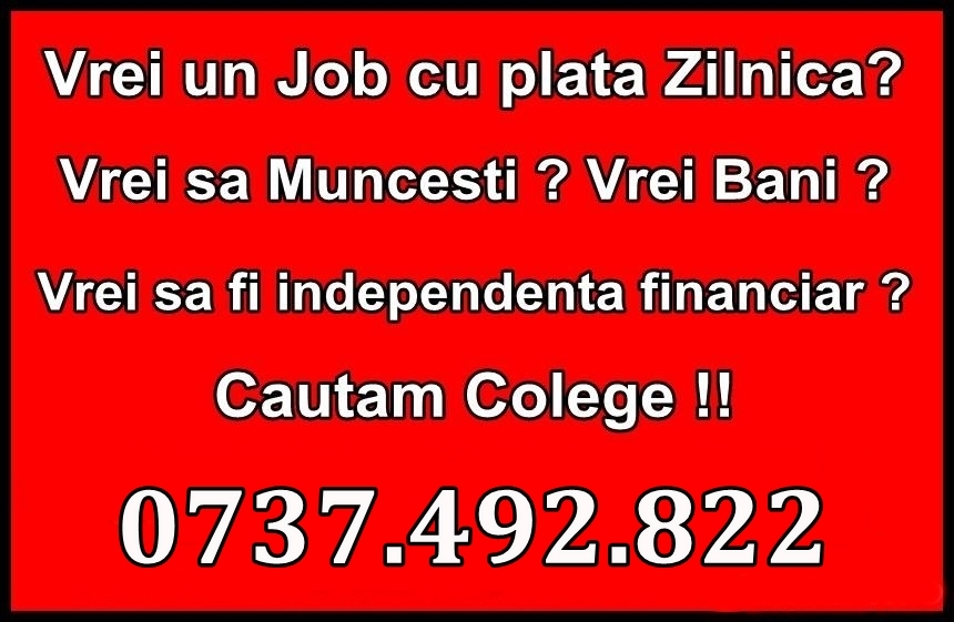 Cerem si oferim seriozitatete asteptam cu mare drag sa ne suni pt. un interviu.