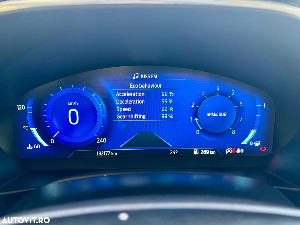 - Aer conditionat perfect functional cu reglaj electronic / Dublu Climatronic-DISPLAY - touchscreen mare , comenzi vocale, Connecting Box: Bluetooth + Kit “maini libere” Android / Apple Car Play- Ceasuri de bord virtual Cockpit- Volan piele reglabil piele reglabil cu comenzi audio / Pilot automat- Jante originale aliaj Ford Sistem monitorizare presiune pneuri- Servodirectie asistata electric- Proiectoare ceata;- Sistem avertizare parasire banda- Senzori parcare fata – spate + camera marsarier- Sistem franare in caz de urgenta- Pilot automat si regulator viteza- Geamuri electrice fata si spate- Oglinzi reglabile electric si incalzite/ rabatabile langa caroserie- Inchidere centralizata cu telecomanda pe cheie / Key less entry / Key less GO- Siguranta activa & pasiva- ABS + REF + AFU + ESP + ASR- airbag sofer, airbag pasager airbag-uri laterale si cortina , genunchi- Martor necuplare centuri siguranta fata- Martor decuplare centuri siguranta spate- Siguranta copii portiere spate