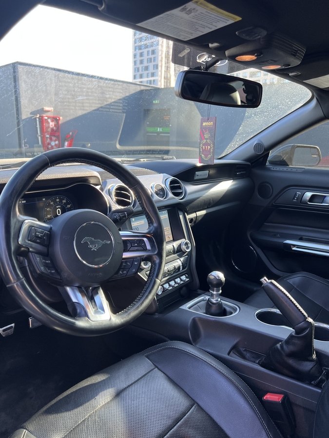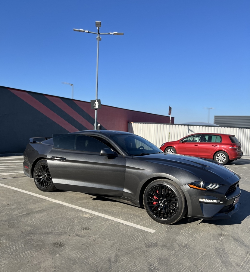 Ford Mustang 2019, motorizare 2.3L EcoBoost turbo (4 cilindri), tractiune spate. Masina este echipata cu pachetul Premium Plus 201A, care include dotari suplimentare fata de versiunea standard Premium.