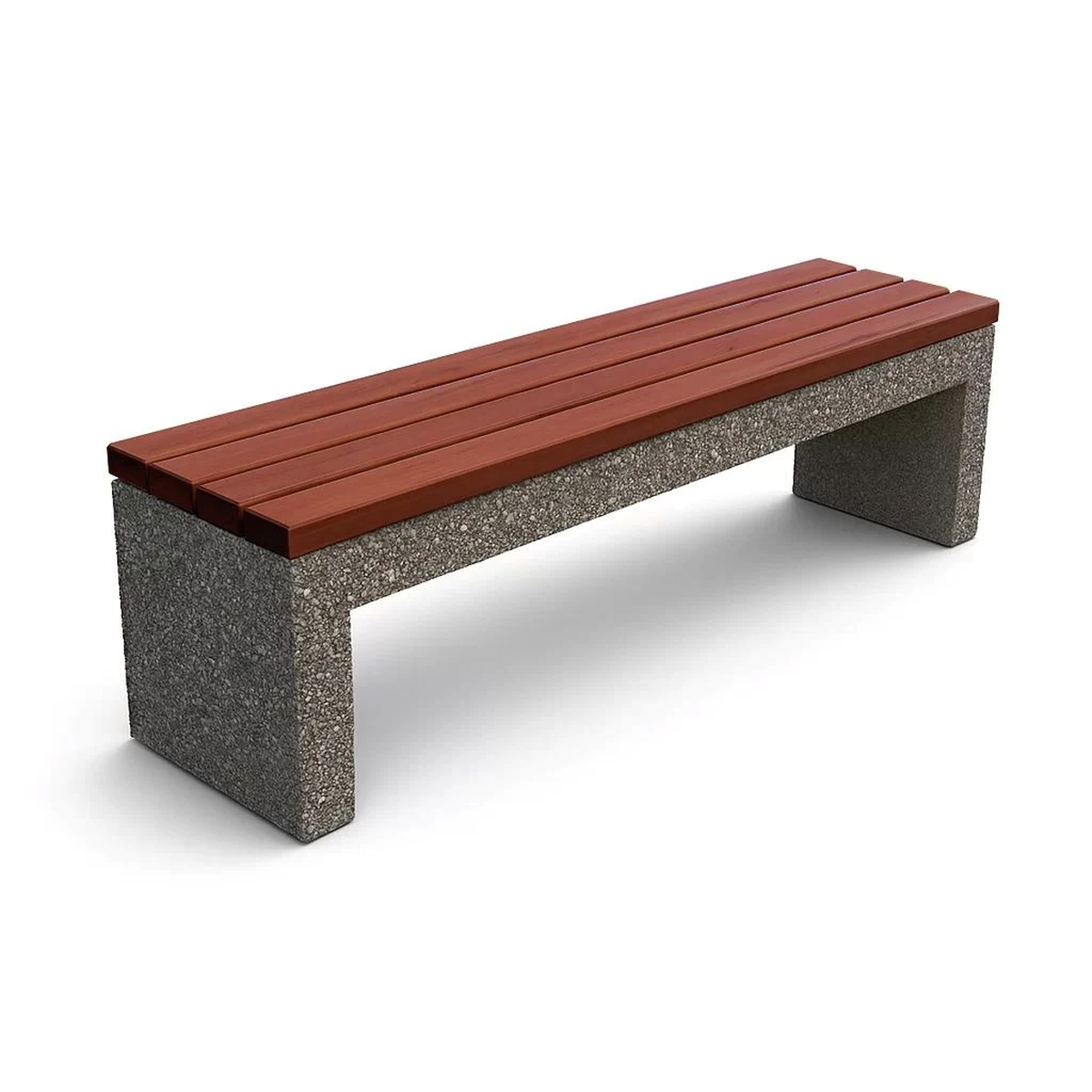 Contrastul dintre textura pietrei si fibra lemnului de brad contureaza o experienta tactila placuta si un punct focal de design in parcuri, terase sau statii de asteptare.