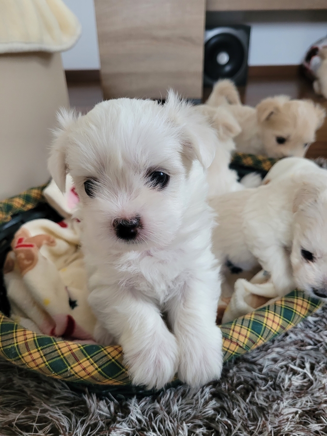 Pui bichon maltez vaccinati, deparazitati comform varstei, carnet de sanatate cautam familie iubitoare.