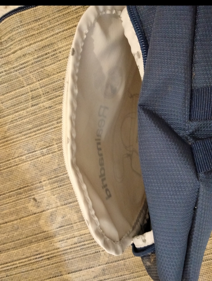 Fermoar principal de culoare alba si fermoar secundar pe partea din spate (bleu marin).