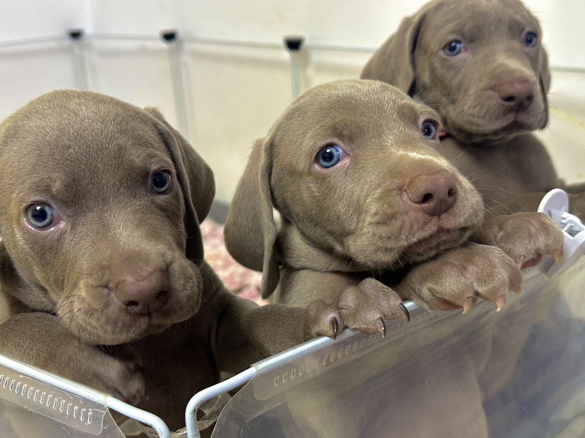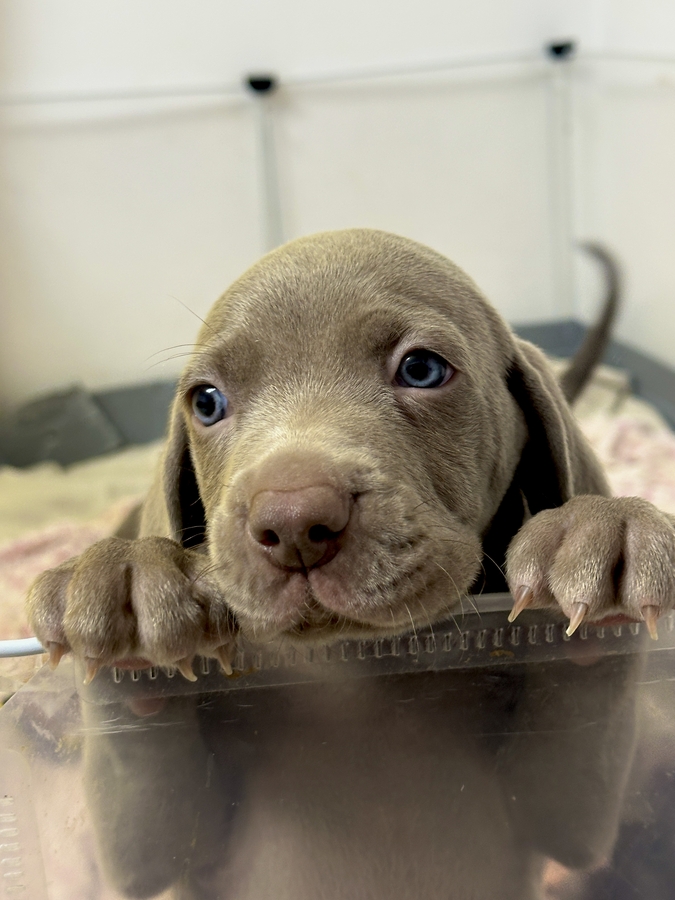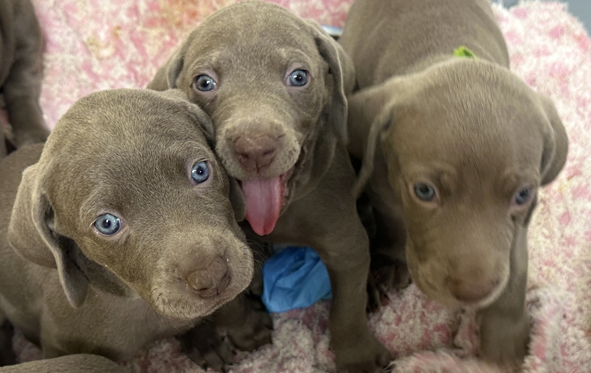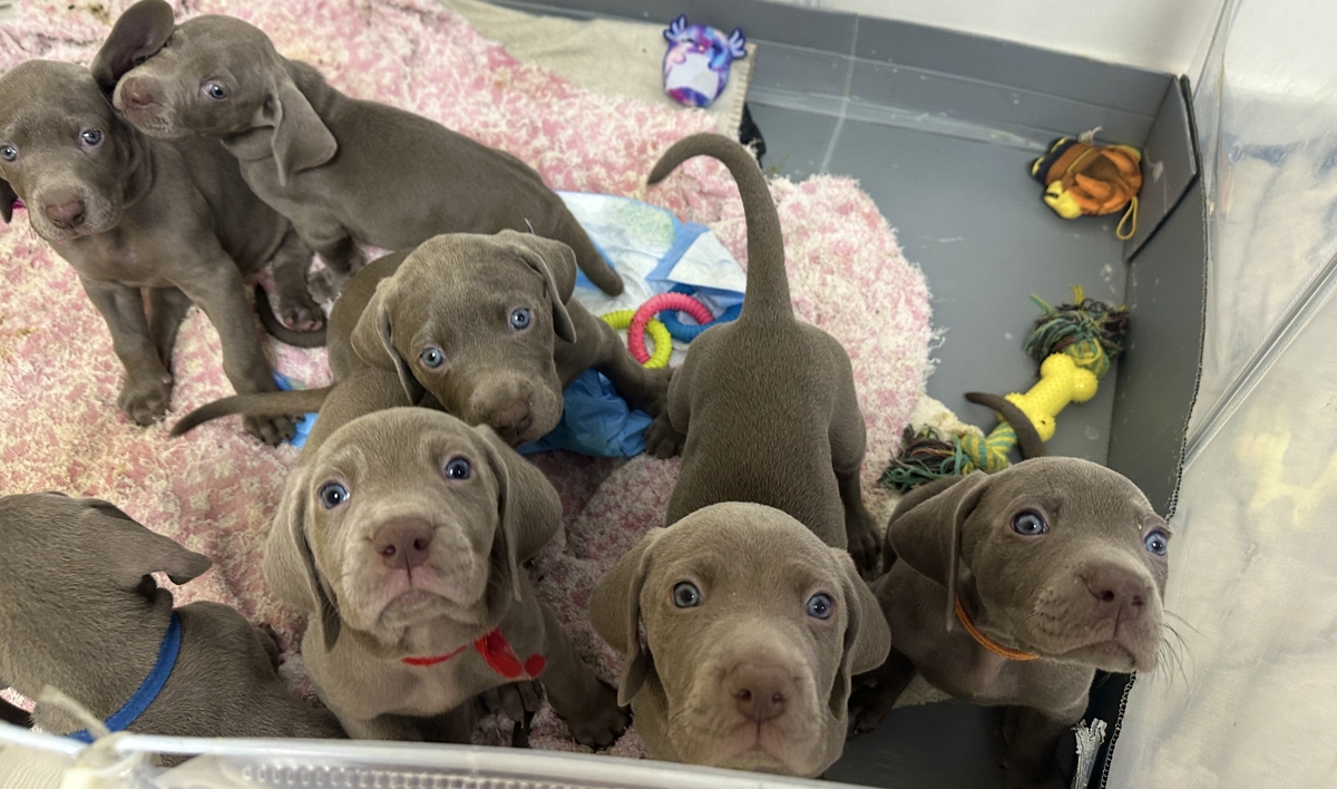 Cautam stapani pentru cei 7 pui de Brac Weimar. (3 fetite si 4 baietei). Au 6 saptamani, manaca hrana uscata.
