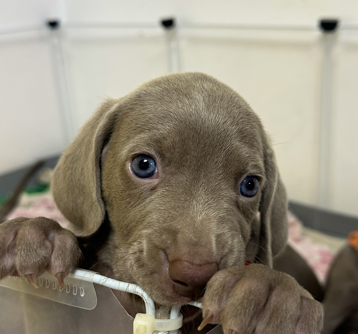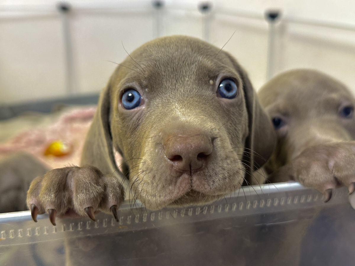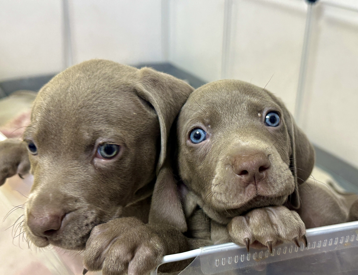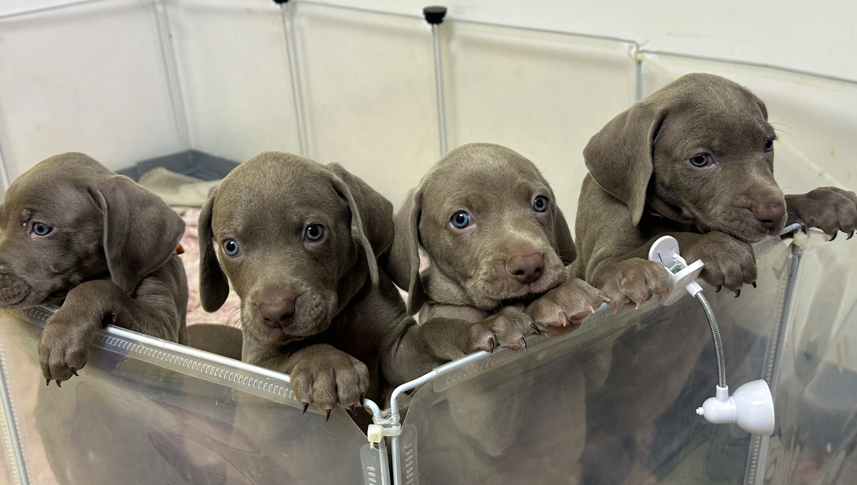 Cautam stapani pentru cei 7 pui de Brac Weimar. (3 fetite si 4 baietei). Au 6 saptamani, manaca hrana uscata.