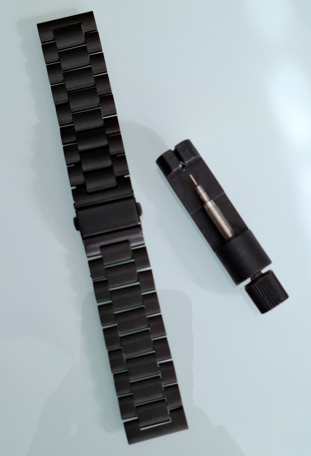 Vand bratara din otel inox pentru ceasuri cu latimea la telescoapele de prindere de 22 mm. Culoarea este neagra.