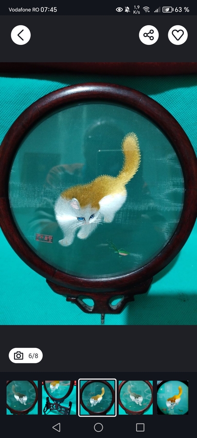 Toata lucrarea este protejata cu geam si asezata pe stativ din lemn.
