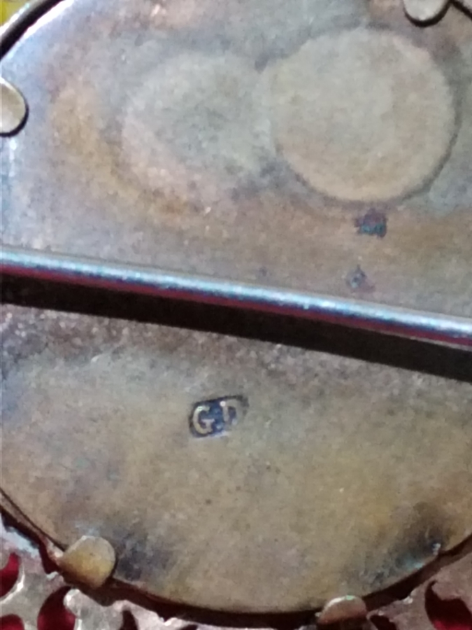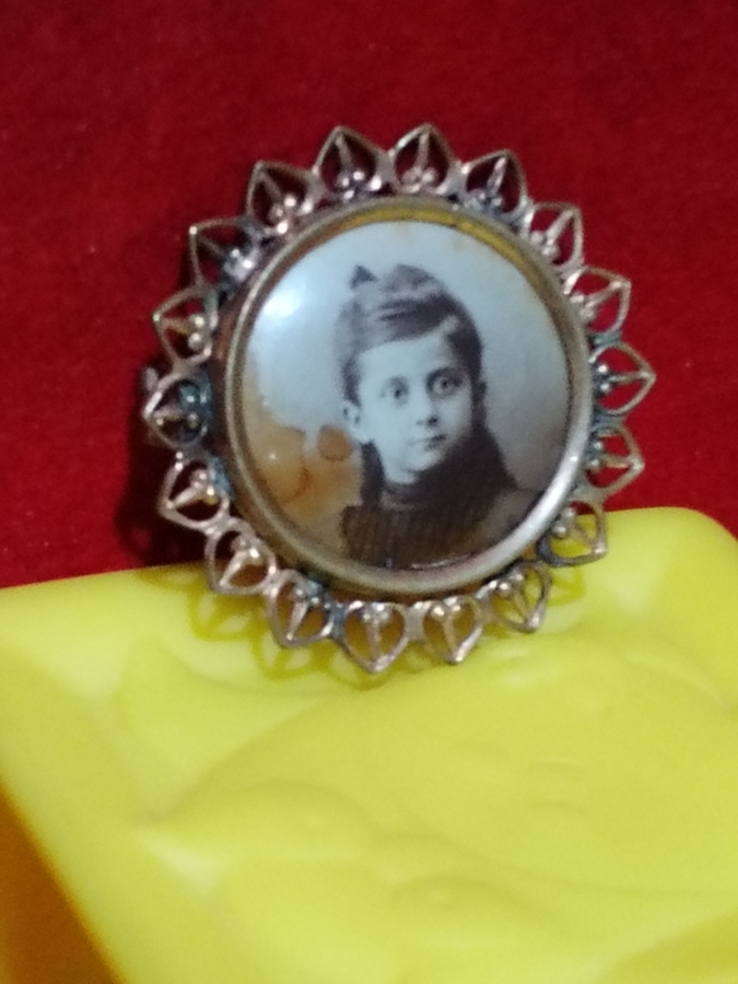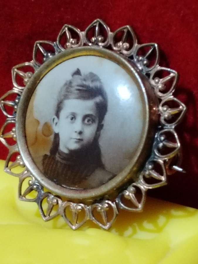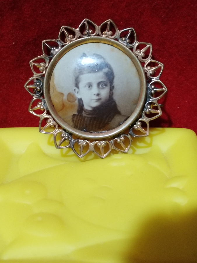 Brosa victoriana din alama aurita cu fotografie sepia