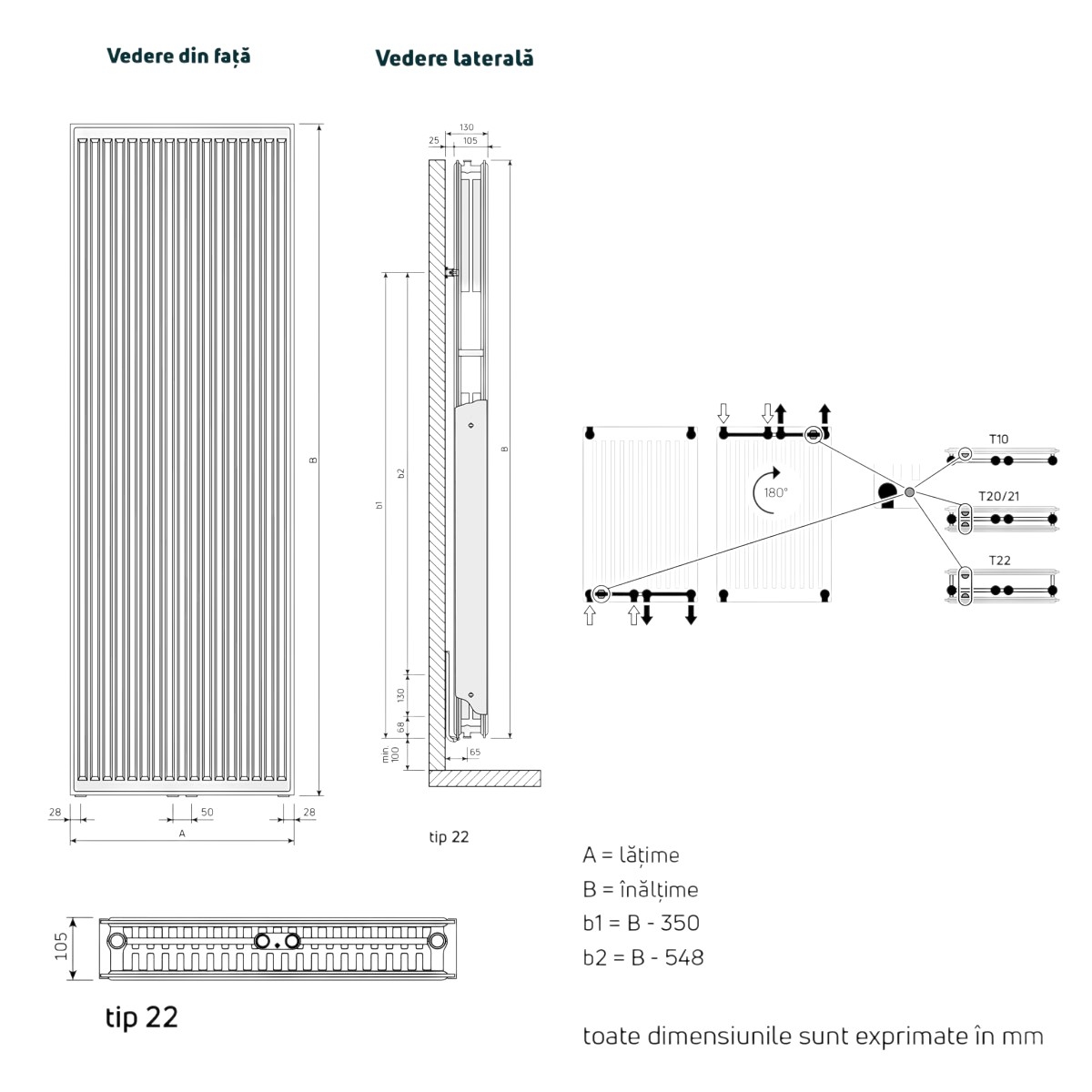 Calorifer vertical Purmo VR22 1800x450 otel alb