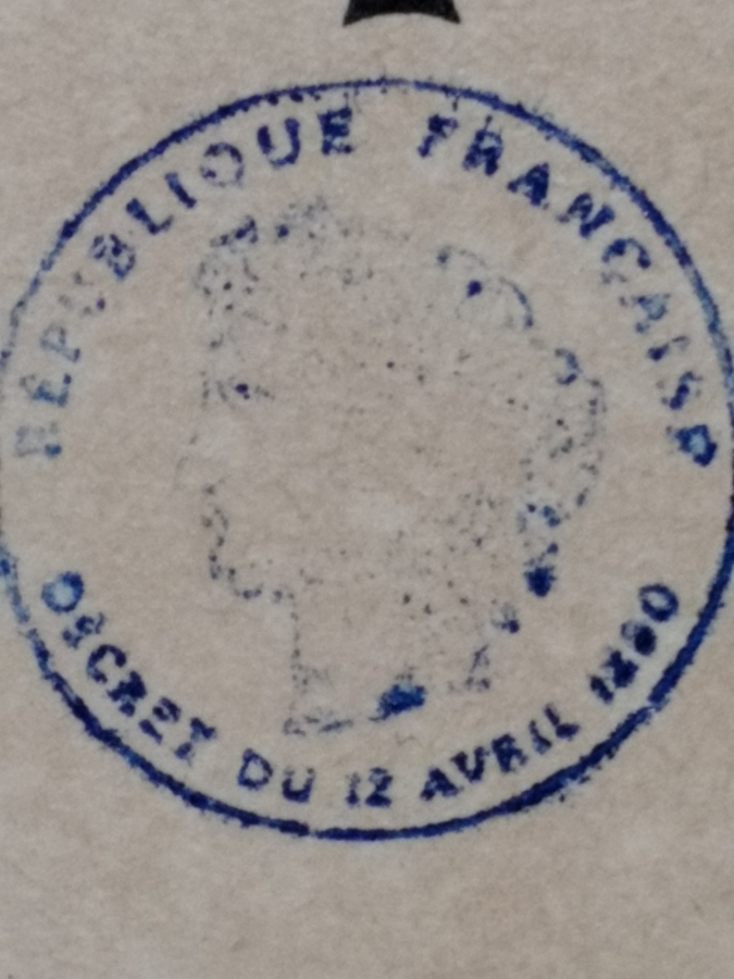 Design autentic cu stampila rara ,,Repubique Francaise Decret du 12 Avril 1890".