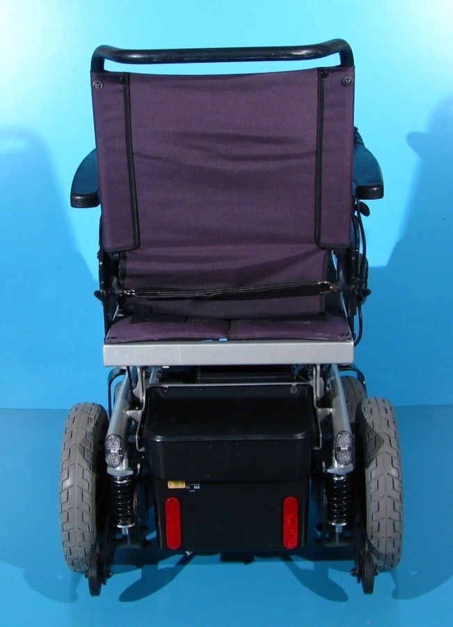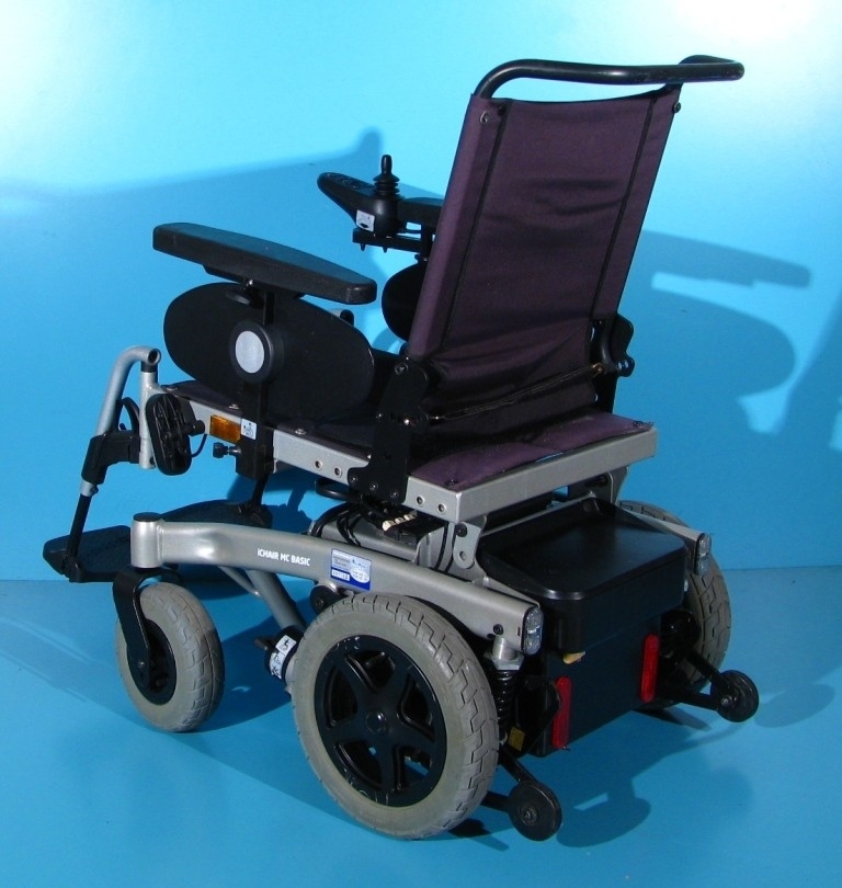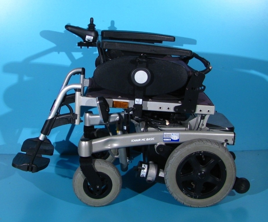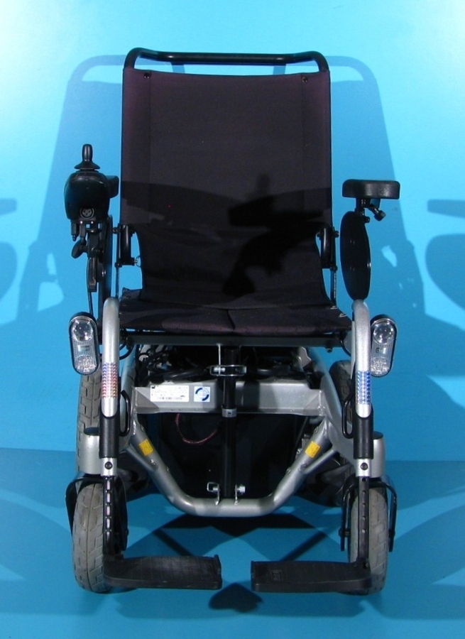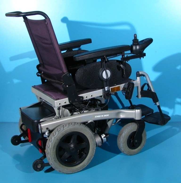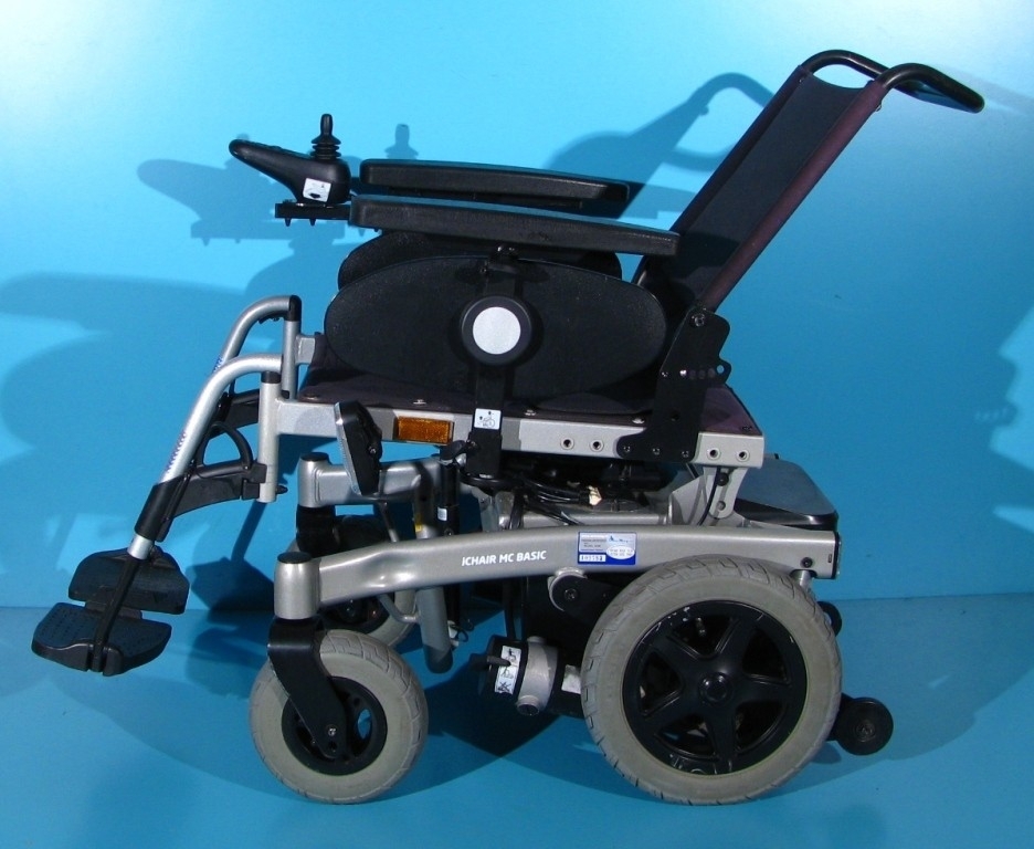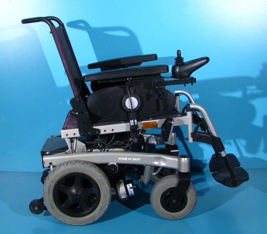 Scaun cu rotile second hand cu comanda pe joystick destinat persoanelor cu handicap si persoanelor cu deficiente locomotorii.