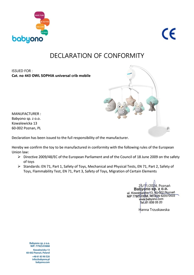 Bufnitele mici, copacul, steaua si luna vor atrage atentia bebelusului, iar sunetul cutiei muzicale il va ajuta pe copil sa se linisteasca.