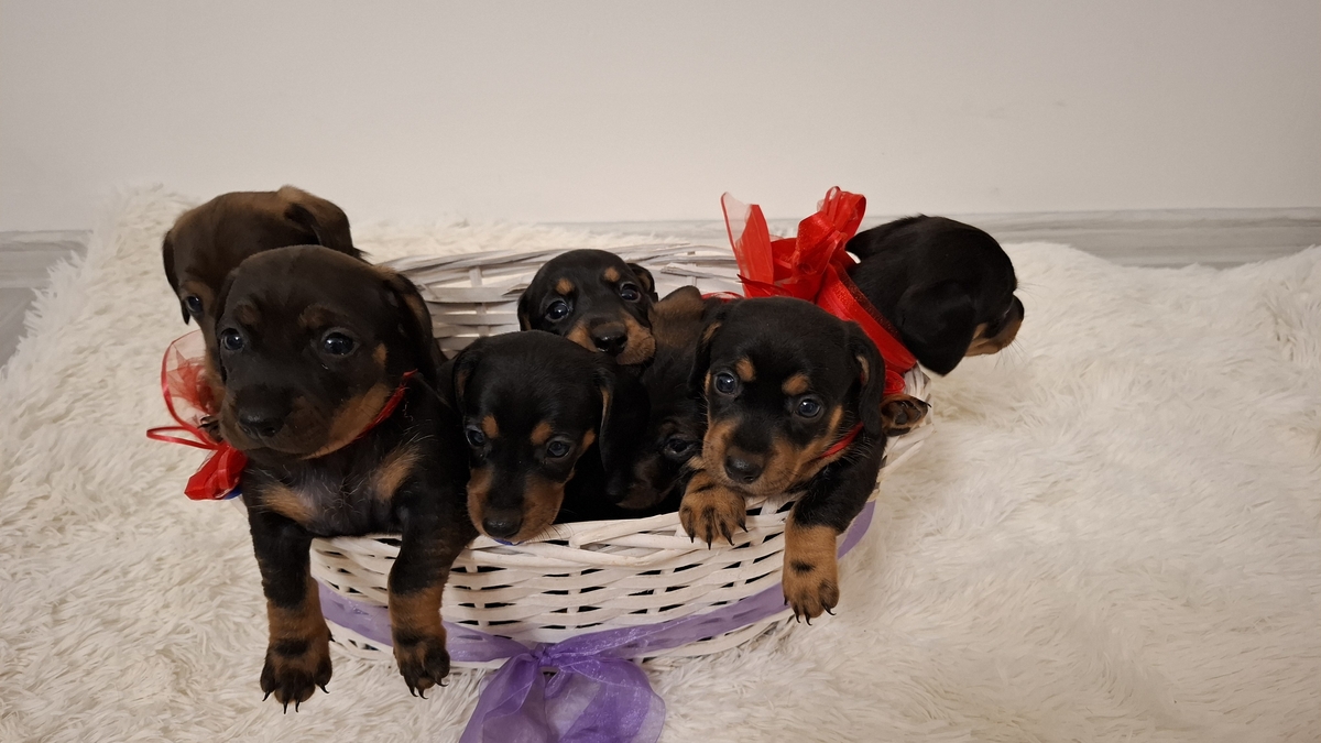 Catelusi rasa Teckel cu par neted isi cauta stapani iubitori. Catelusii sunt nascuti pe 14 iunie, 3 baieti si 4 fetite. Vor pleca spre noua lor casa avand carnet de sanatate, schema de deparazitare si vaccinare la zi. Pentru detalii astept mesaj sau apel. Numar de contact tel