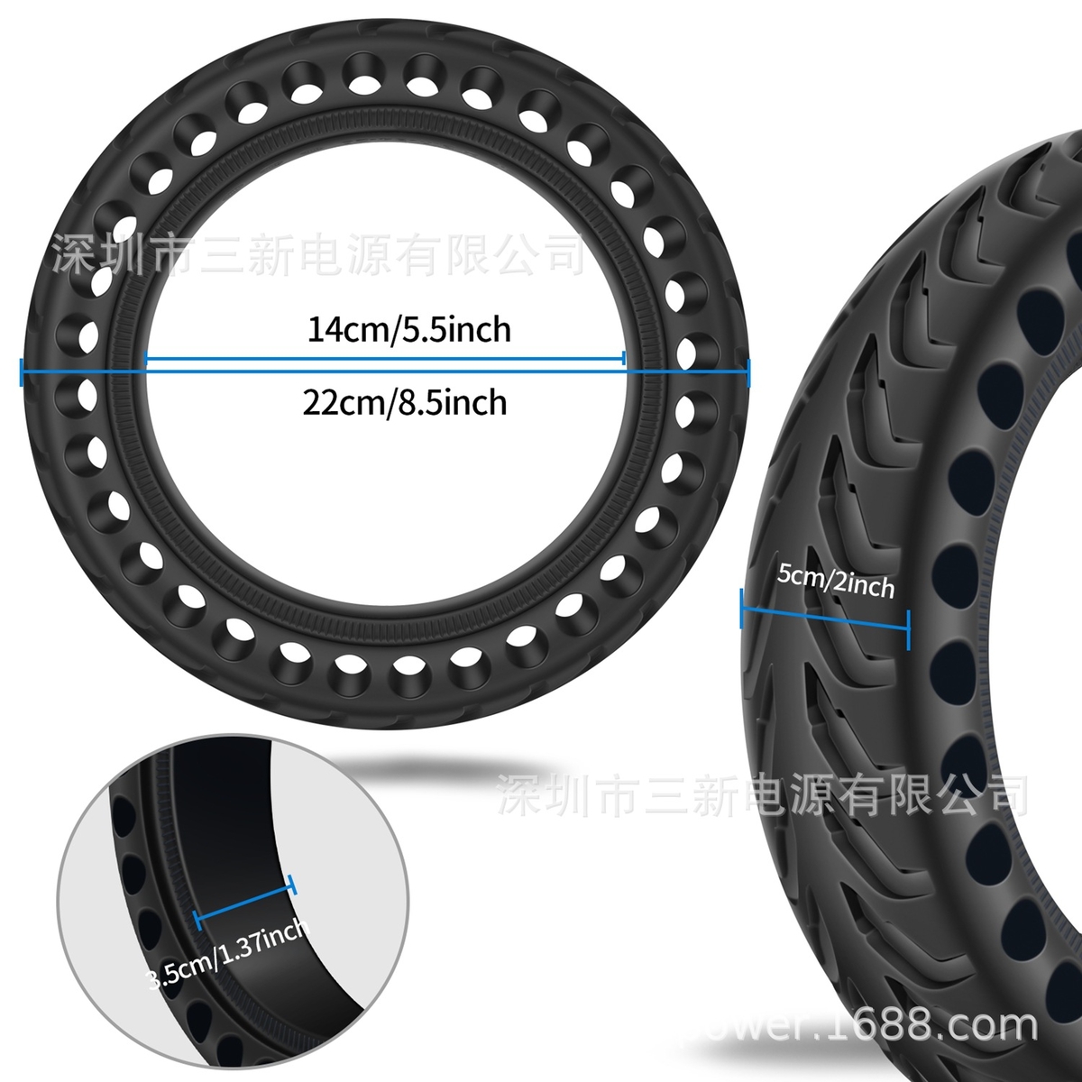 Cauciucuri pline antipana pentru trotinete electrice cu dimensiunea rotii de 8,5 inch (8 1/2 x2)