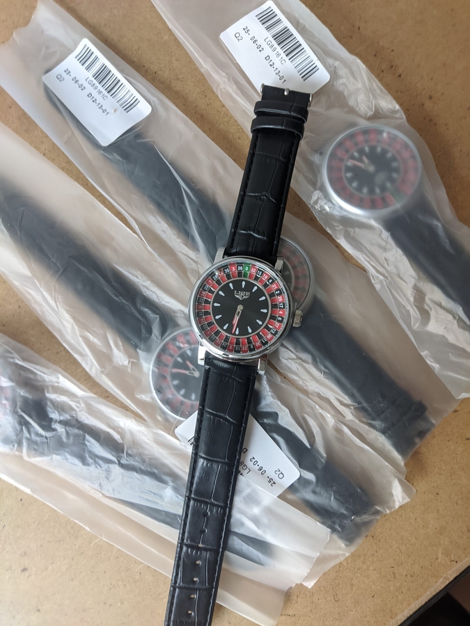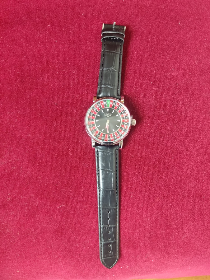 Vand ceasuri barbatesti LIGE, noi, neutilizate. Design inspirat de roata de ruleta, cu cadran negru si curea din piele ecologica. Bila din mijloc se roteste.