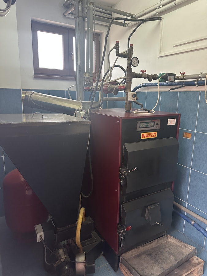 ➡️ A fost folosita rar, pentru incalzirea ocazionala a unei pensiuni de ~600 mp (12 camere, holuri si parter cu sala de mese, bucatarie si receptie). Este curatata, cu service realizat anual conform cerintelor legislative, incarcata cu peleti de calitate. O vindem deoarece in zona a fost introdusa reteaua de gaz, la care urmeaza sa ne racordam.