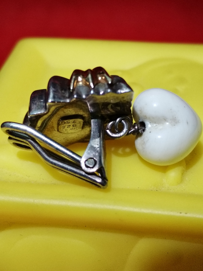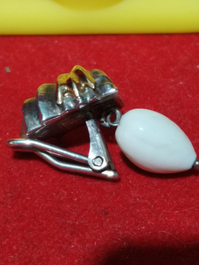 Cercei vintage francezi cu clips, lucrati manual, in combinatie eleganta de argint 925 si aur masiv de 18K, marcat 750.