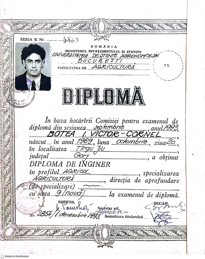Absolvent al facultatii de agricultura IAMB Bucuresti promotie 1993 , experienta cultura mare ,sef ferma crescatorie pui de carne ,cultura bio legume in sera , no till si mini till .