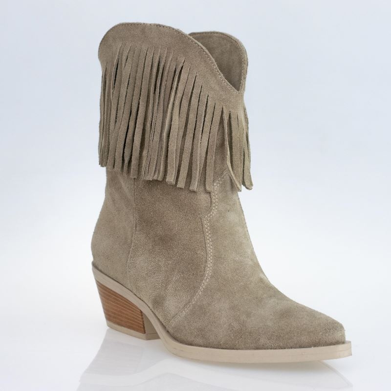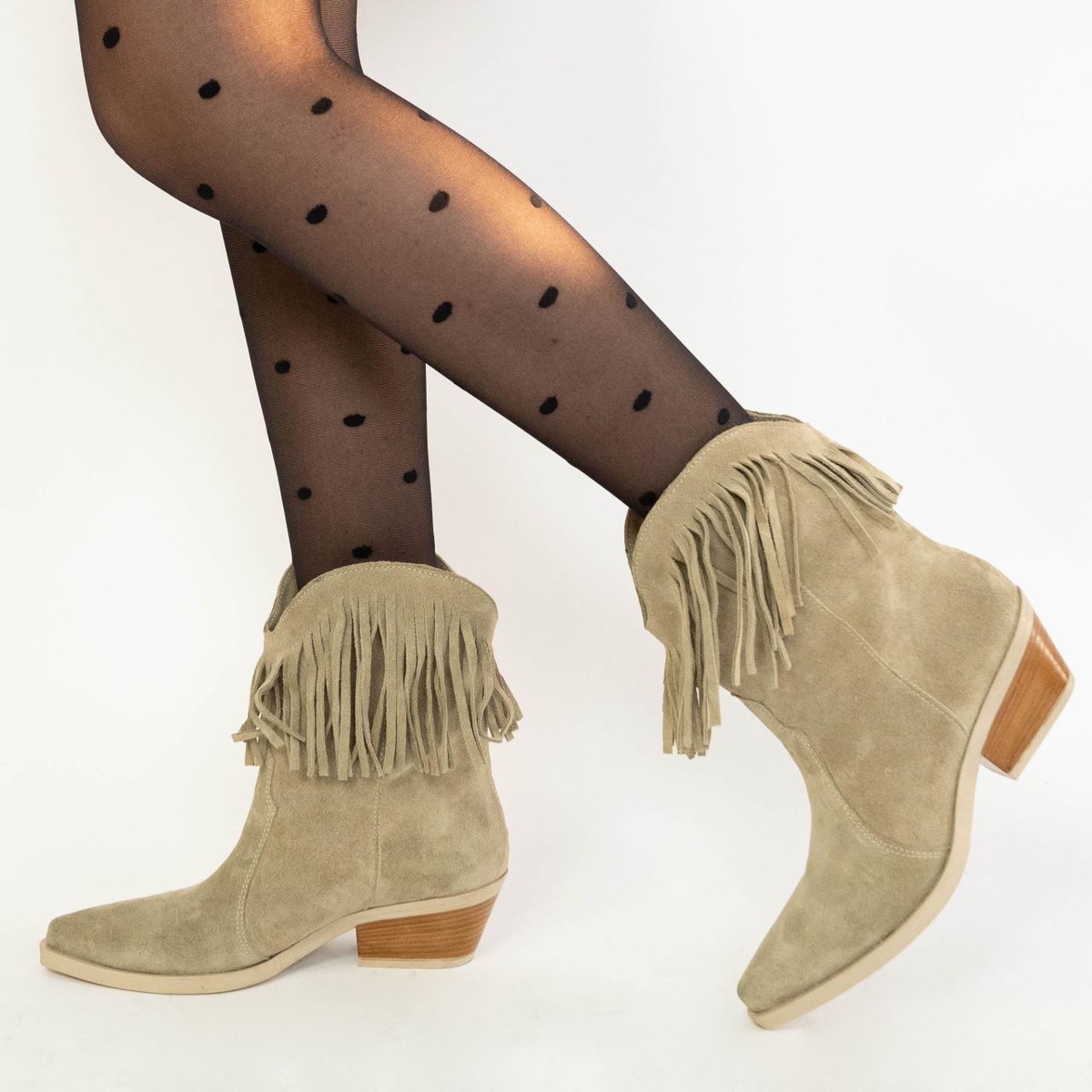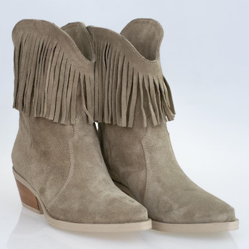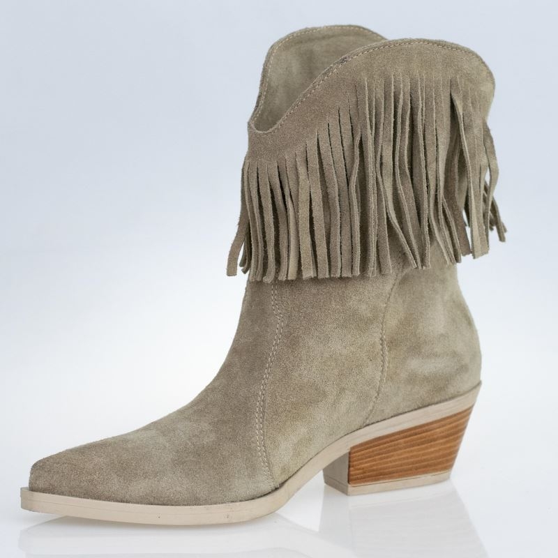 Ciocate de dama bej piele intoarsa cu franjuri.Piele naturala 100 %