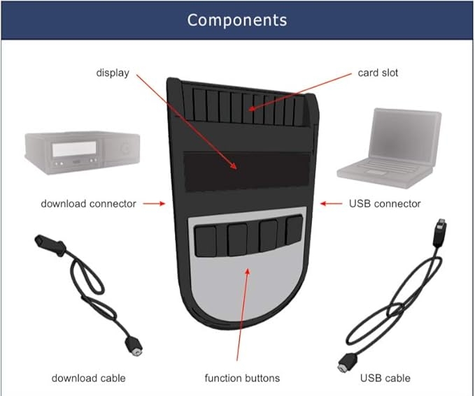 Tacho2Safe este un dispozitiv complet de descarcare manuala a tahografului, care combina atat functia de descarcare a tahografului, cat si a cardului de conducator auto. Este un dispozitiv simplu, ergonomic, potrivit pentru utilizarea de catre soferii proprietari, flote mici sau operatori mari de transport. Datele de descarcare sunt stocate in memoria interna a dispozitivului. Consumul redus de energie permite descarcarea a peste 500 de carduri complete cu o singura baterie de tip AA, dar poate functiona cu baterii reincarcabile care se incarca automat prin USB.
