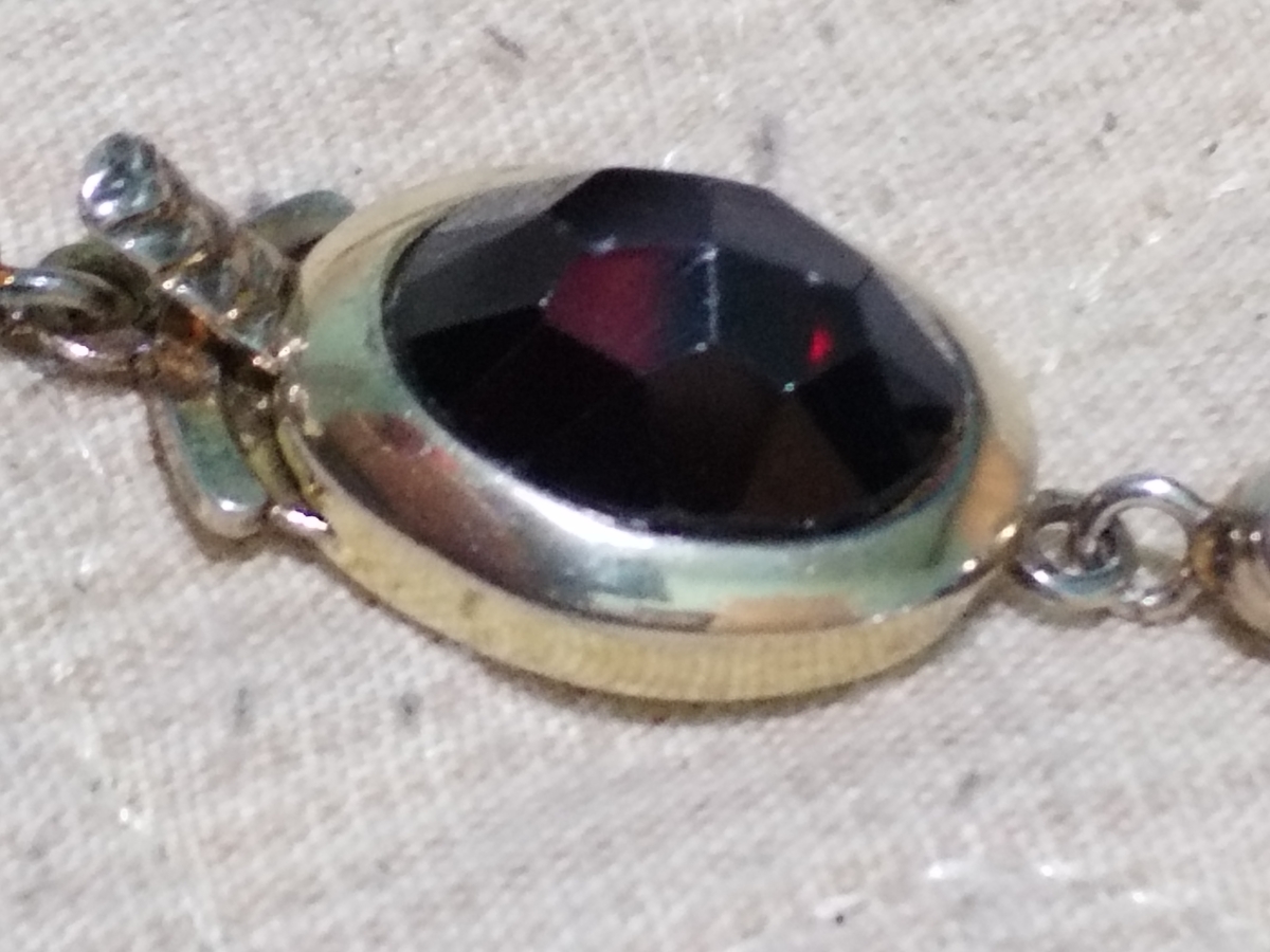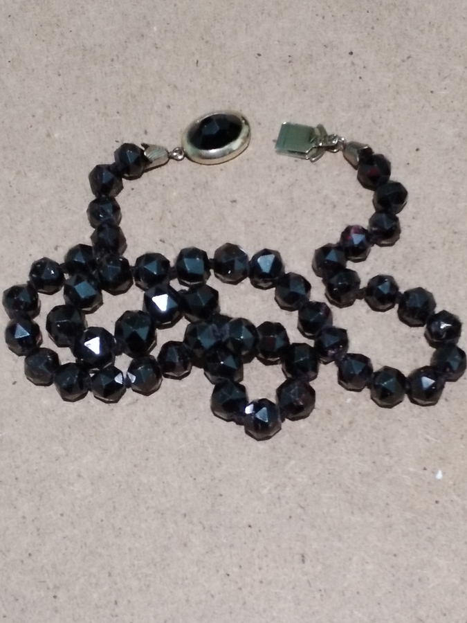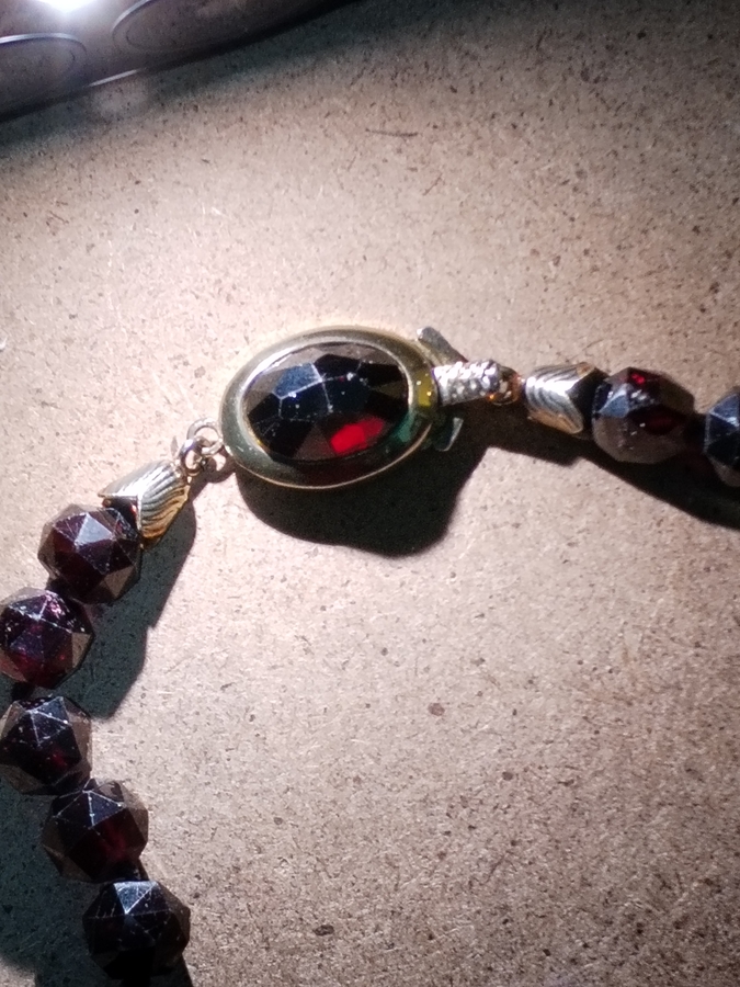Elegant colier vintage cu granate, anii 1950-1960, cu inchizatoare din argint aurit.