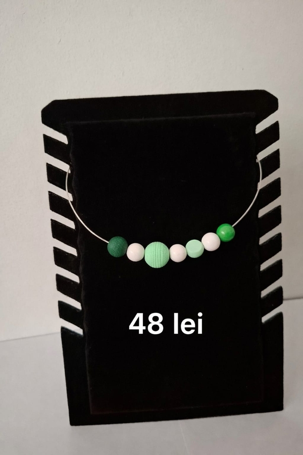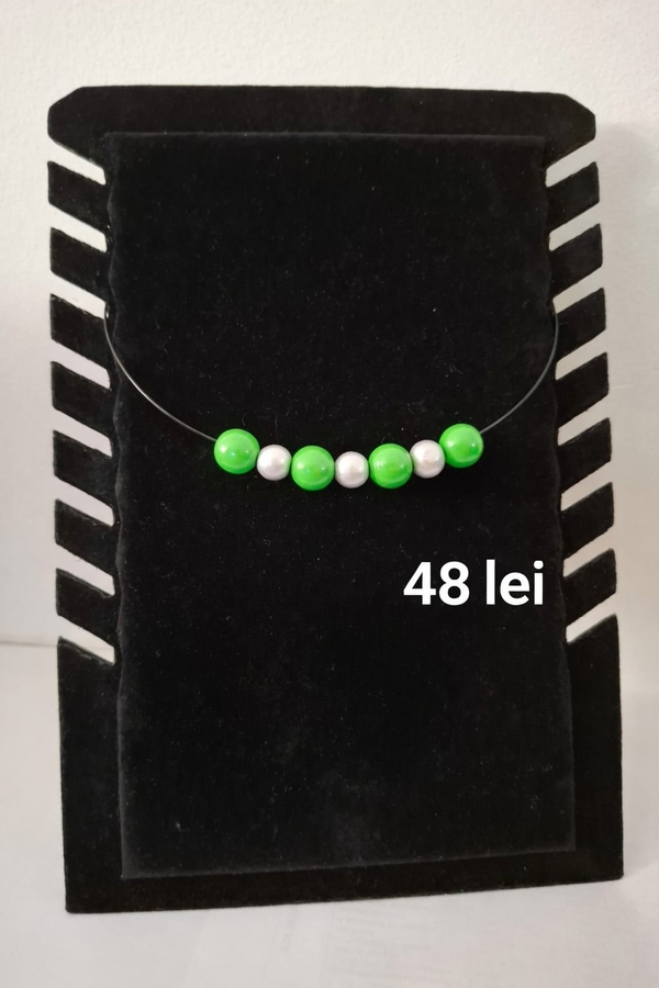 Coliere handmade moderne, realizate pe cablu metalic din otel inoxidabil cu inchidere sigura pe baza magnetica.