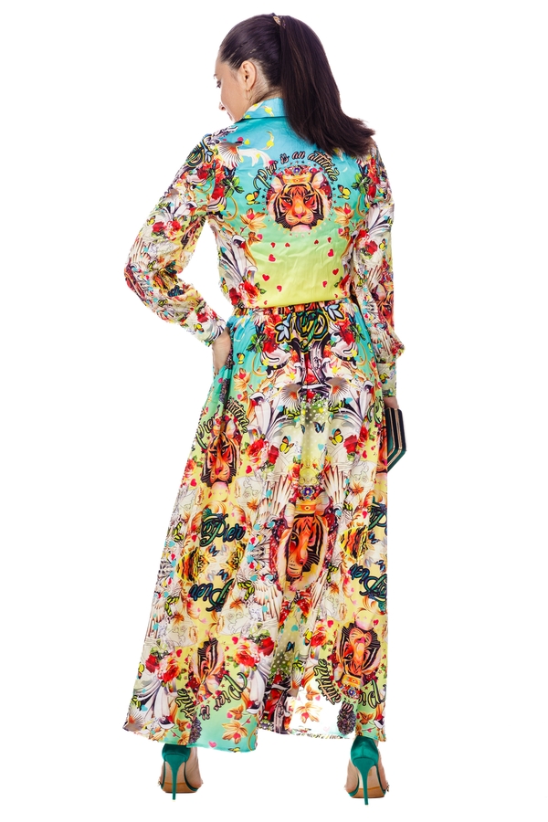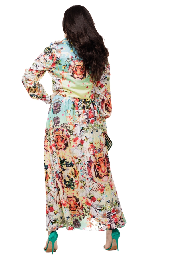 In culori vibrante cu tonuri unice, acest set format din 3 piese, top, camasa si fusta este alegerea perfecta indiferent de ocazie
