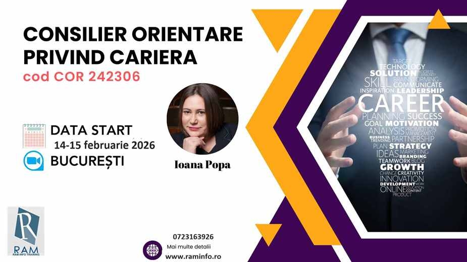 Data incepere curs: sambata 21 februarie 2026 - ora 09.30- curs de weekend- la sala/ online, in functie de posibilitatea participantilor.