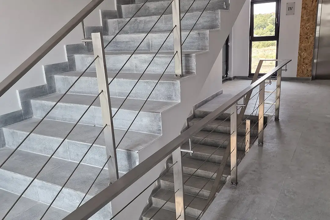 Robuste si elegante, aceste modele sunt ideale pentru zone cu trafic intens sau expuse la intemperii (balcoane, pasarele, scari exterioare). Inoxul folosit este de tip AISI 304 sau 316, rezistent la coroziune, si poate fi:
