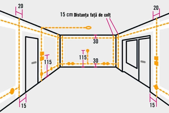 Montaj prize, intrerupatoare, corpuri de iluminat, senzori.