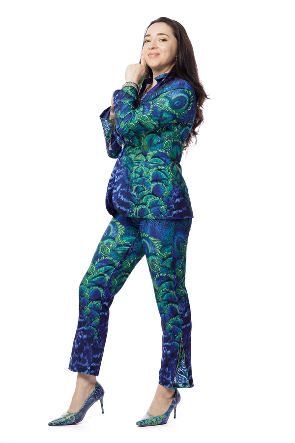 Costumul Representative este o piesa de rezistenta a oricari femei cu atitudinte. Imprimeul Goddess cu textul pier is an attitude inmobileaza tinuta realizata in tonalitati de albastru regal, si verde smarald. Setul este format din 3 piese vestimentare, vesta cu spatele gol, pantaloni cu buzunare spate si laterale, respectiv jacheta cu buzunare piept. Atat la maneci, cat si la pantaloni, accesoriul cu vermoar in decupaj lasa la vedere logo-ul nostru si ofera un touch de eleganta.