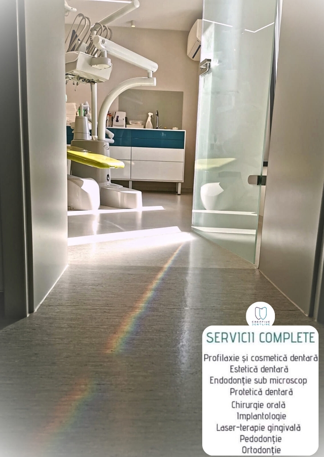 Creative Dentline este una dintre cele mai noi si moderne clinici stomatologice din Alba Iulia. Dotarile de ultima generatie sunt gandite astfel incat sa faciliteze fiecare vizita a pacientilor la clinica noastra. Am construit in aceeasi incinta un laborator de tehnica dentara si un cabinet de radiologie, cu scopul de a le aduce pacientilor nostri cat mai multe beneficii si de a micsora timpul pe care acestia il petrec intr-un cabinet stomatologic. Cabinetele sunt dotate cu aparatura de ultima generatie si intreaga clinica este pastrata in conditii de igiena superioare. Echipa Creative Dentline este formata din medici specialisti pasionati de ceea ce fac, imbunatatind zi de zi munca lor prin participarea la diferite cursuri sau conferinte de specialitate.