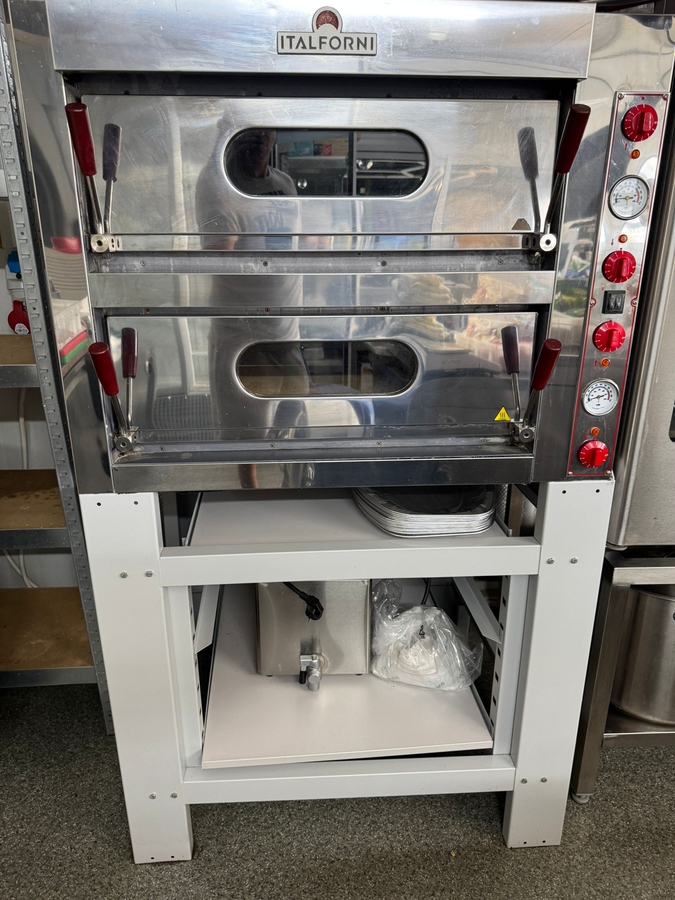 Cuptorul este pe vatra special pentru pizza, patiserie ITALFORNI model TK, electric, 2 camere, capacitate 2 x 4 pizza.