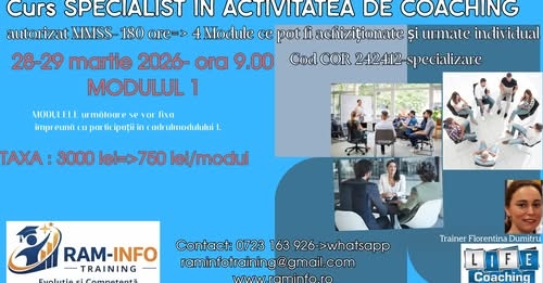 Curs autorizat ANC, MECT si MMSS -SPECIALIST IN ACTIVITATEA DE COACHING- COR 242412- 180 ore