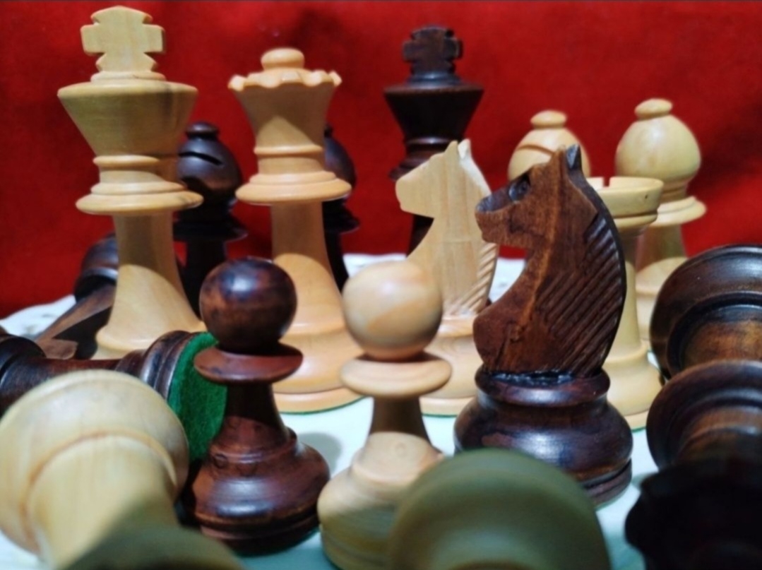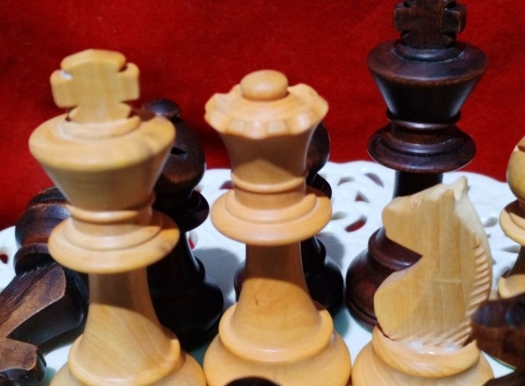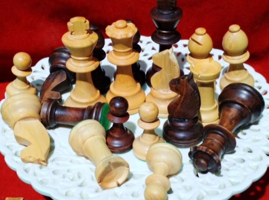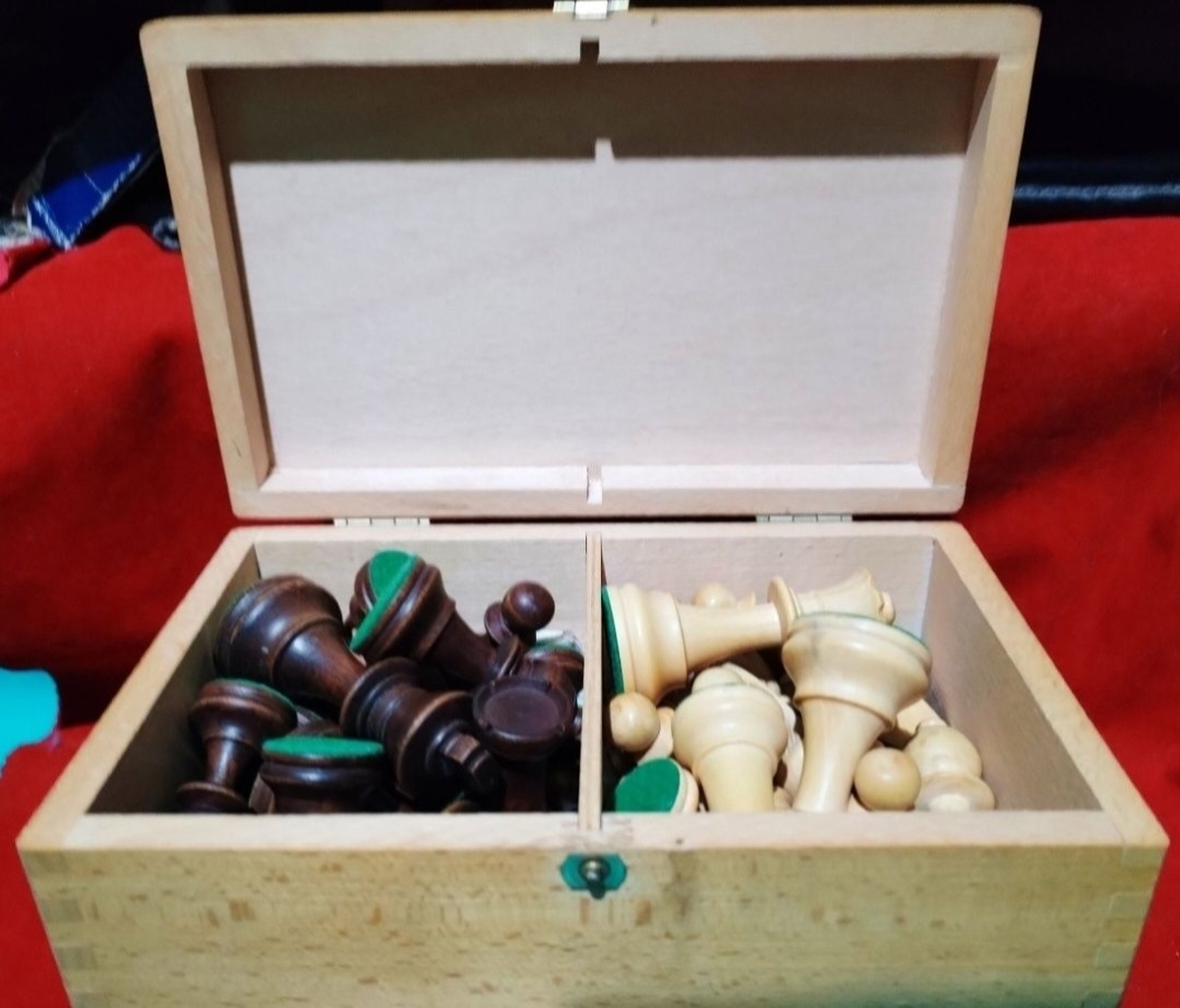 Cutie din lemn Villeroy & Boch anii 1950-1960, cu piese de sah din lemn, cu design deosebit si ingrijit.
