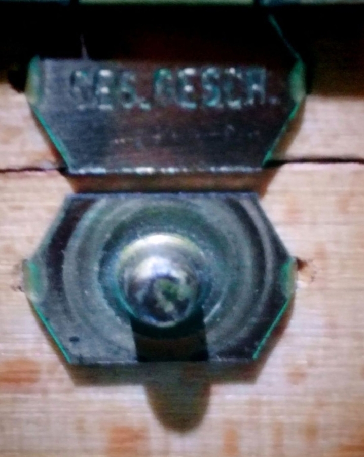 Marcaj pe sistemul de inchidere al cutiei GES. GESCH, care se traduce prin ,,Protejat prin lege".