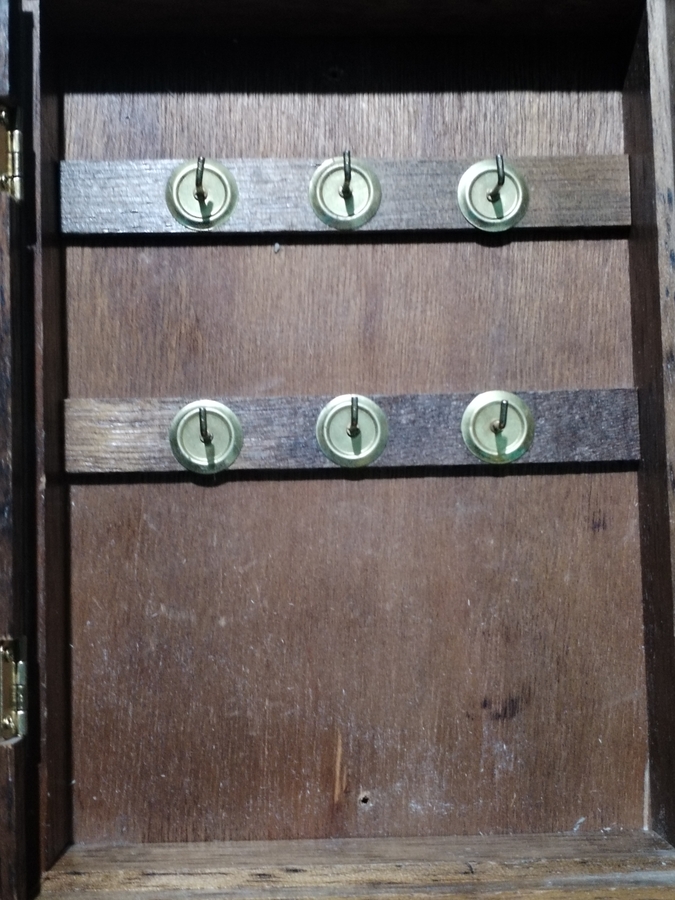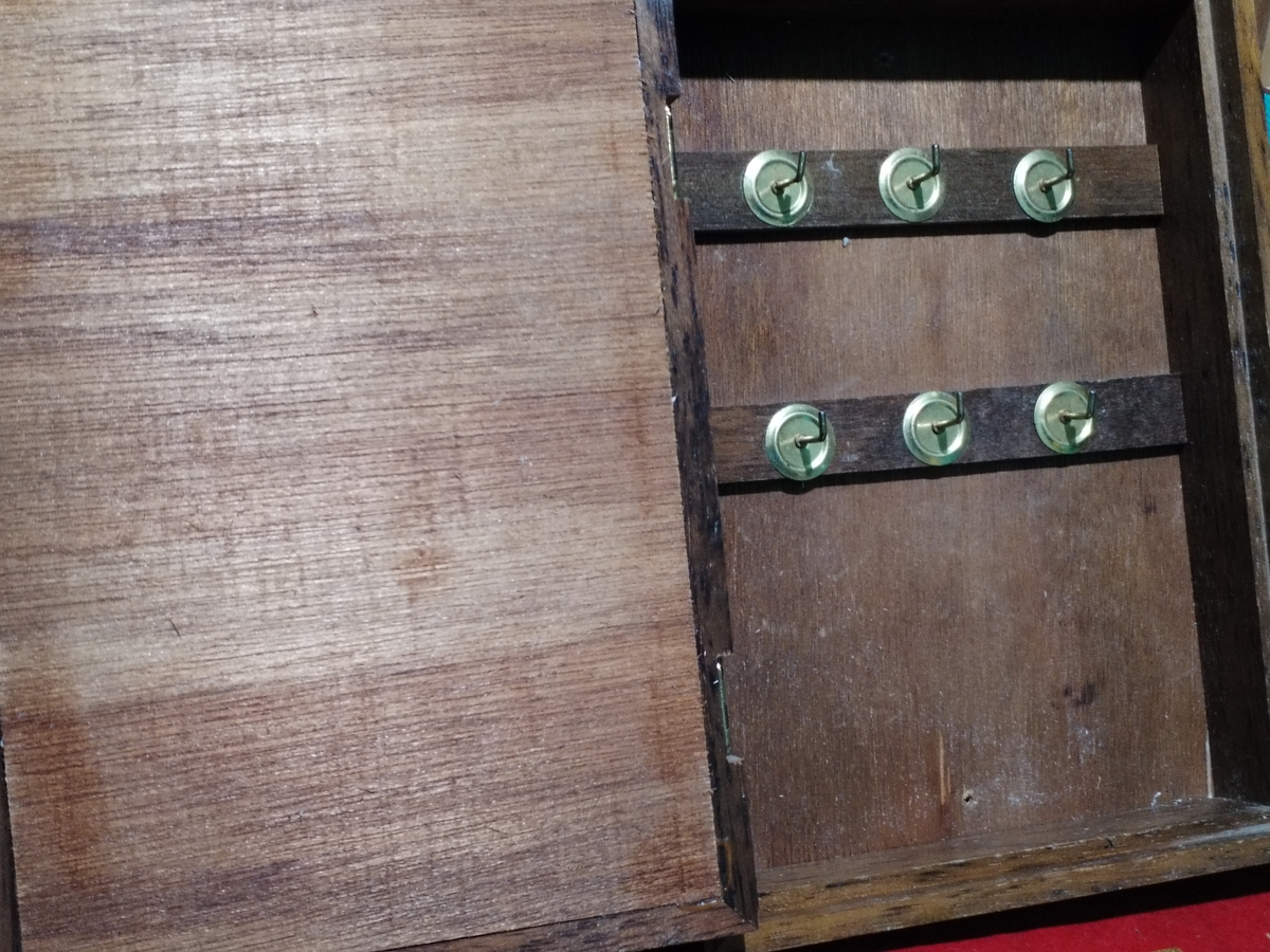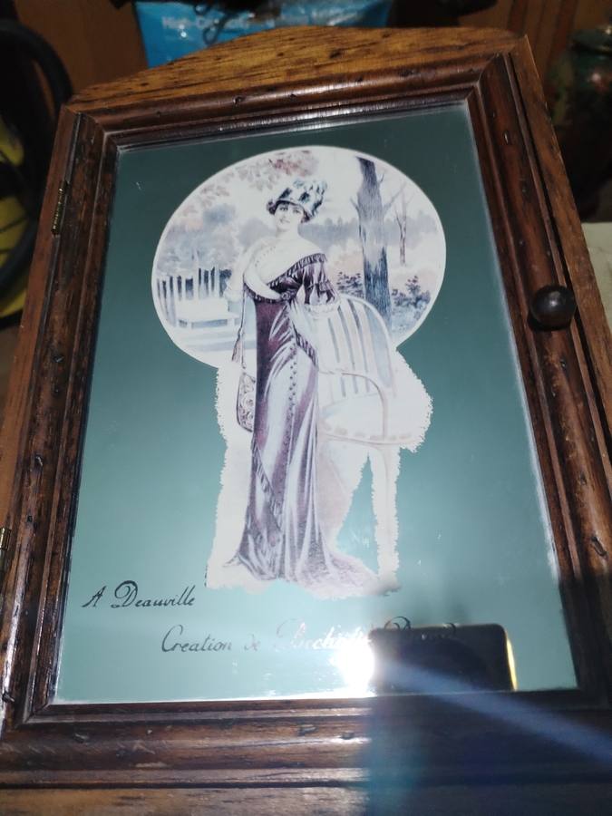 Cutie vintage pentru chei, realizata din lemn si oglinda cu serigrafie A Deauville, Creation de Bechoff Davie.