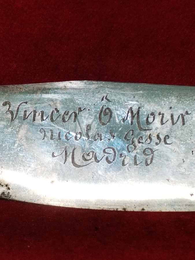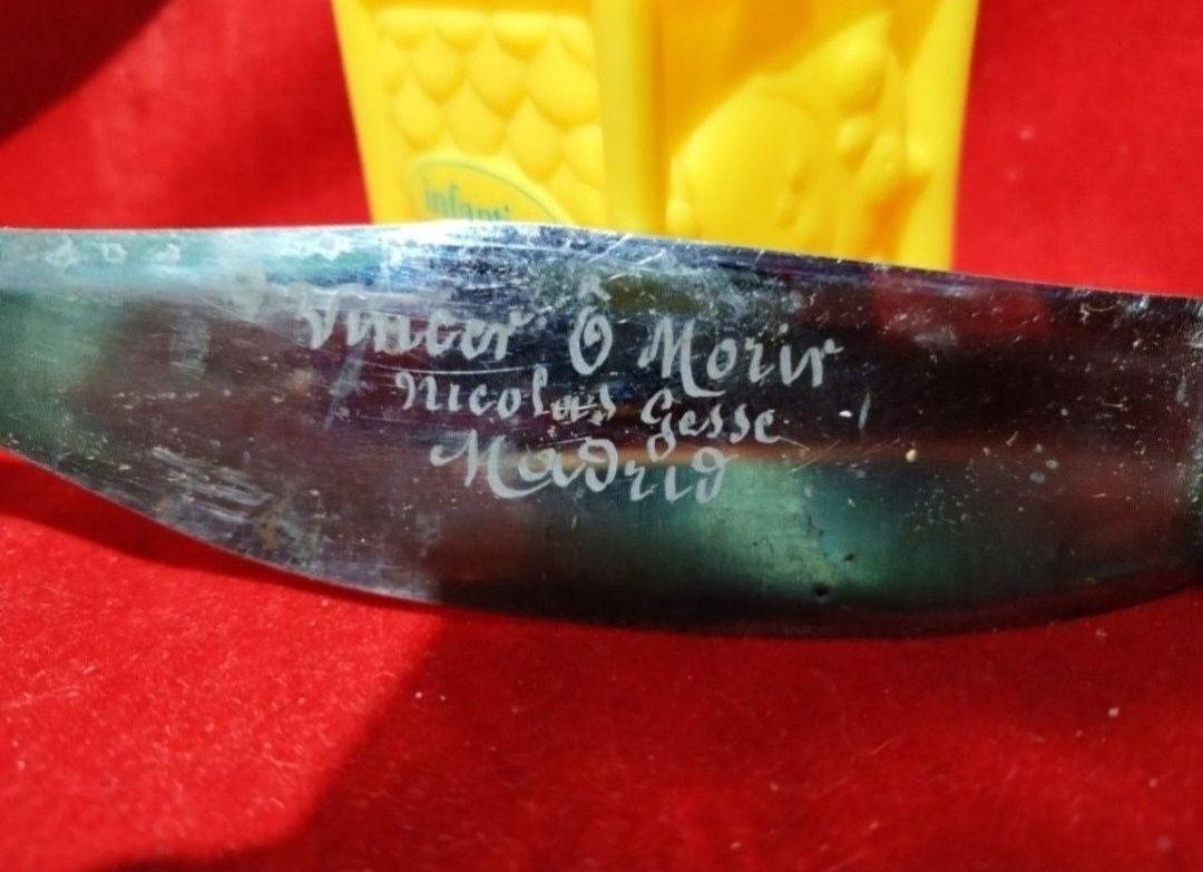 Cutit vechi spaniol gravat pe lama Vincere Or Morir, tradus prin "Invinge sau Mori".