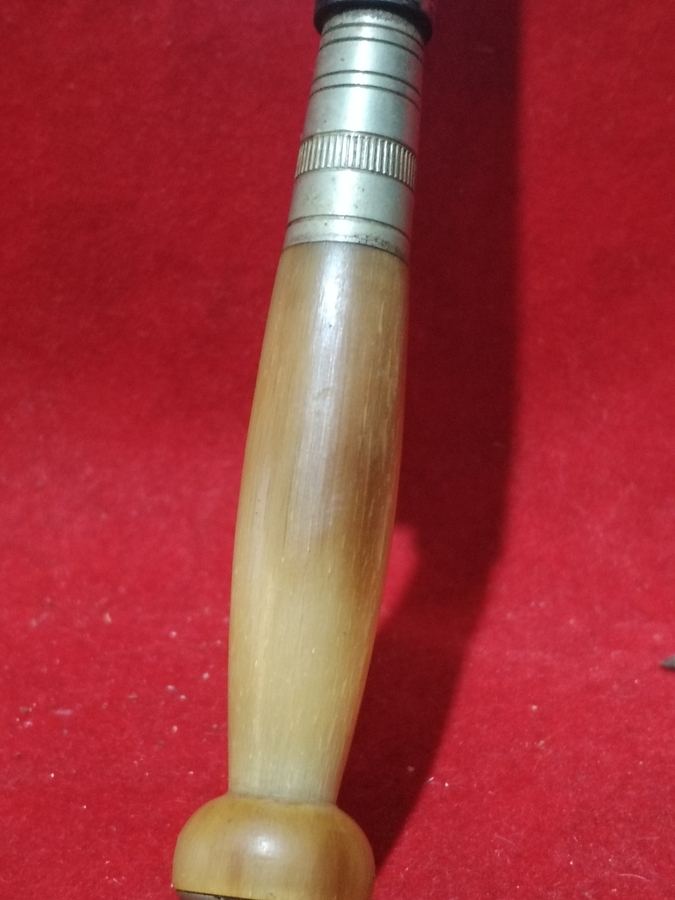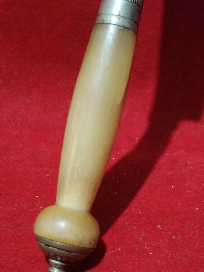 Se purta la cizma pe plantatii si in viata cotidiana, de catre mosierii spanioli care au colonizat Brazilia.Manerul este din fildes, (supus si la raze ultraviolete prezinta fluorescenta alb -abastruie), prezenta linilor Schreger si patina maronie pe alocuri, confirma vechimea sa.
