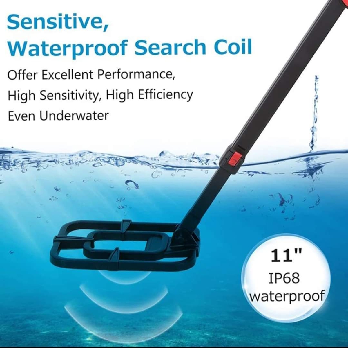 Bobina de cautare lata de 3, 10" este atat de puternica incat poate localiza un sfert de moneda pana la 10" sub pamant. Poate gasi obiecte mai mari la adancimi si mai mari. Bobina este impermeabila si functioneaza bine in apa putin adanca.