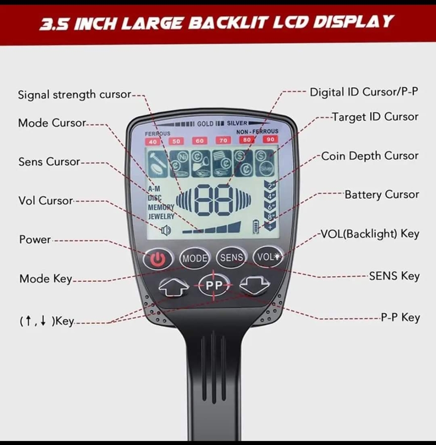 2, Display LCD mare are un ecran mare clar, care este usor de citit. Iluminarea de fundal va permite sa lucrati in intuneric pentru mult mai multa flexibilitate. 3 moduri de afisare pentru a identifica cu usurinta tipul de metale pe care le detectezi. Afiseaza imaginea si sunetul digital cu mai multe setari pentru personalizare.