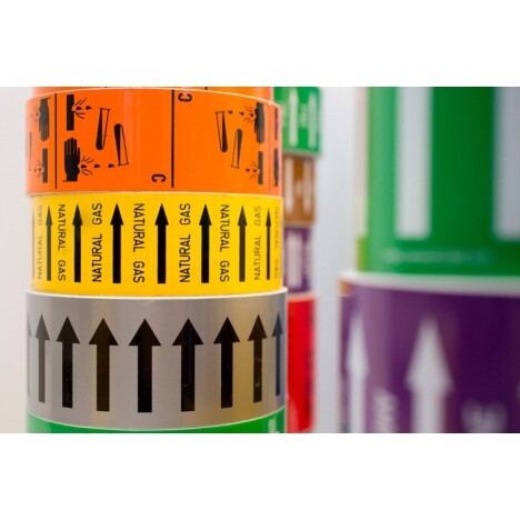 Vand Etichete de securitate pentru conducte la un pret foarte avantajos! Etichete de securitate pentru conducte Rezistent la flacara Rola autoadeziva Extrem de adeziv Rezistent in mare parte la acizi si alcalii Rezistent la UV Fixare peste 5C pana la 45C Utilizati de la -20C pana la 110C Rezistent in mare parte la solventi Rezistent la intemperii 5 ani garantie Majoritatea etichetelor furnizate in Romania sunt bazate pe doua straturi, unde este folosit un lac de protectie pentru a proteja informatiile imprimate. In timp, acest strat dispare, iar informatiile critice sunt vulnerabile si se vor estompa si se vor decolora. Benzile si etichetele noastre sunt serigrafiate folosind cerneluri de inalta calitate care nu necesita protectie si sunt total rezistente la UV, intemperii si temperatura. Nu se vor estompa culoarea Prevenirea poate oferi si un serviciu complet de instalare. Stim ca uneori clientii nostri nu au forta de munca disponibila pentru a-si eticheta fabricile. Aici Prevenirea va pot ajuta facand acest lucru pentru ei. Toti inginerii nostri instalatori au multi ani de experienta in acest tip de lucrari si toti au ?autorizatiile de siguranta\" necesare. Toti sunt capabili sa functioneze complet independent de desenele de conducte si instrumente ale amplasamentului. Cu toata munca noastra garantata, clientii nostri stiu ca aceasta lucrare importanta va fi finalizata profesional, in siguranta si in cel mai scurt timp posibil. Etichetele noastre text sunt de cea mai inalta calitate disponibila pe piata. Sunt extrem de adezivi, rezistenti la alcalii acizi si solventi, rezistenti la UV si intemperii, cu o rezistenta la temperatura intre -20c si +110c.Benzile noastre de text sunt toate bazate pe un singur strat. Cele mai multe benzi disponibile sunt bazate pe doua straturi. Pentru a proteja informatiile imprimate se foloseste un lac de protectie. Acest strat protector se va desface in timp si se va desprinde. Informatiile tiparite vor fi apoi vulnerabile, se vor estompa si apoi vor trebui inlocuite. Cerneala noastra imprimata nu necesita protectie si este total rezistenta la U.V, la intemperii si la temperatura.