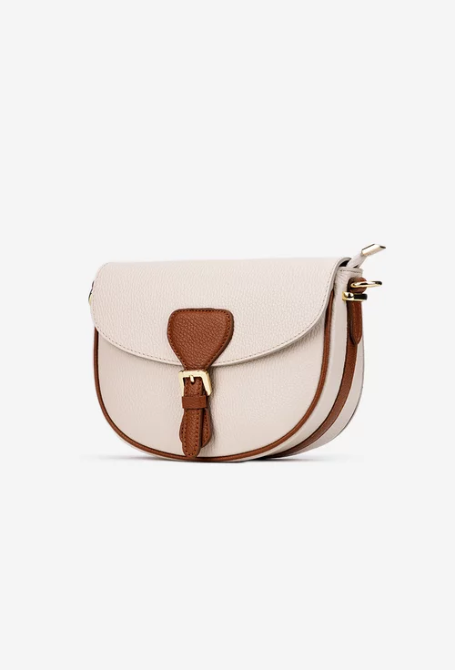 Geanta dama crossbody bej deschis cu maro din piele texturata