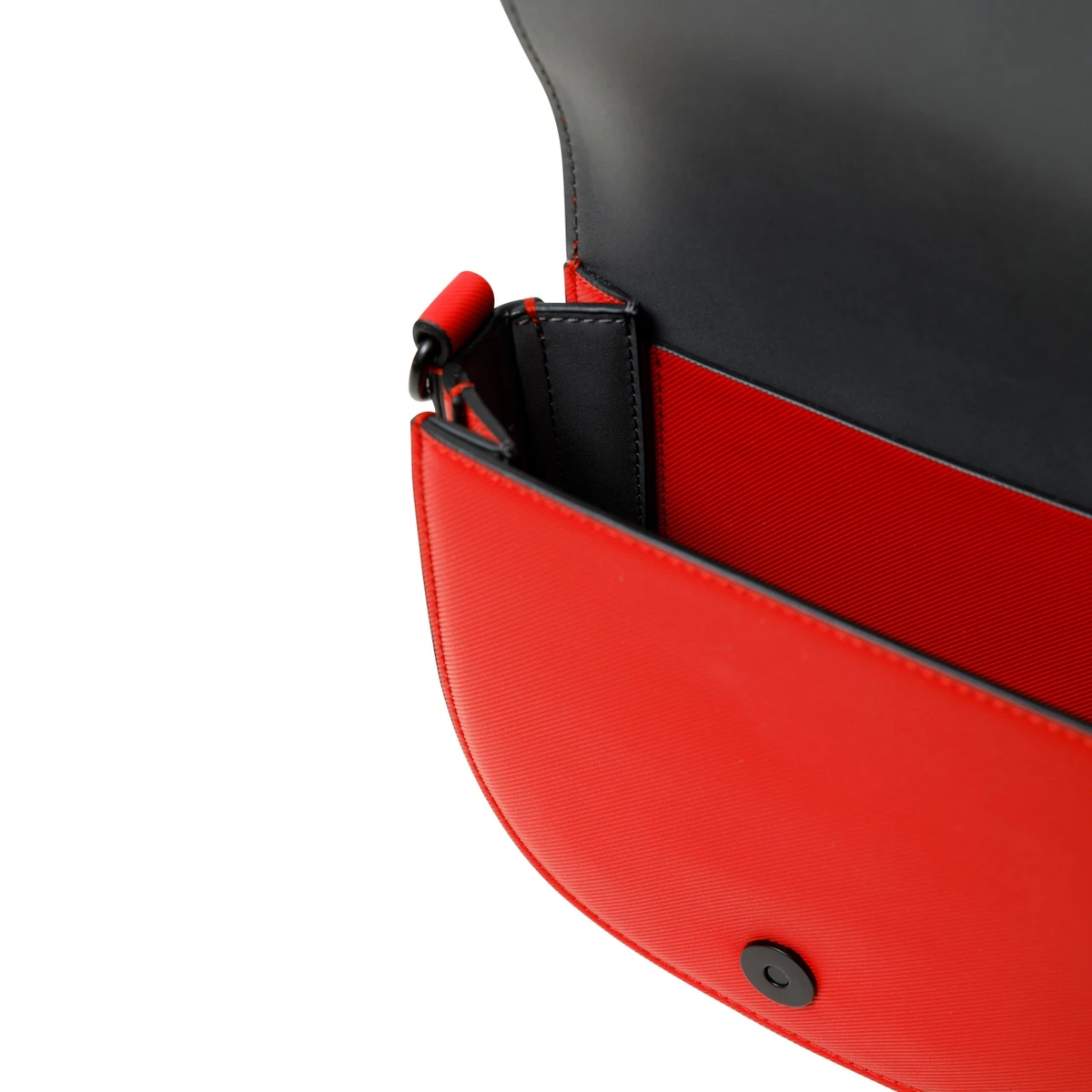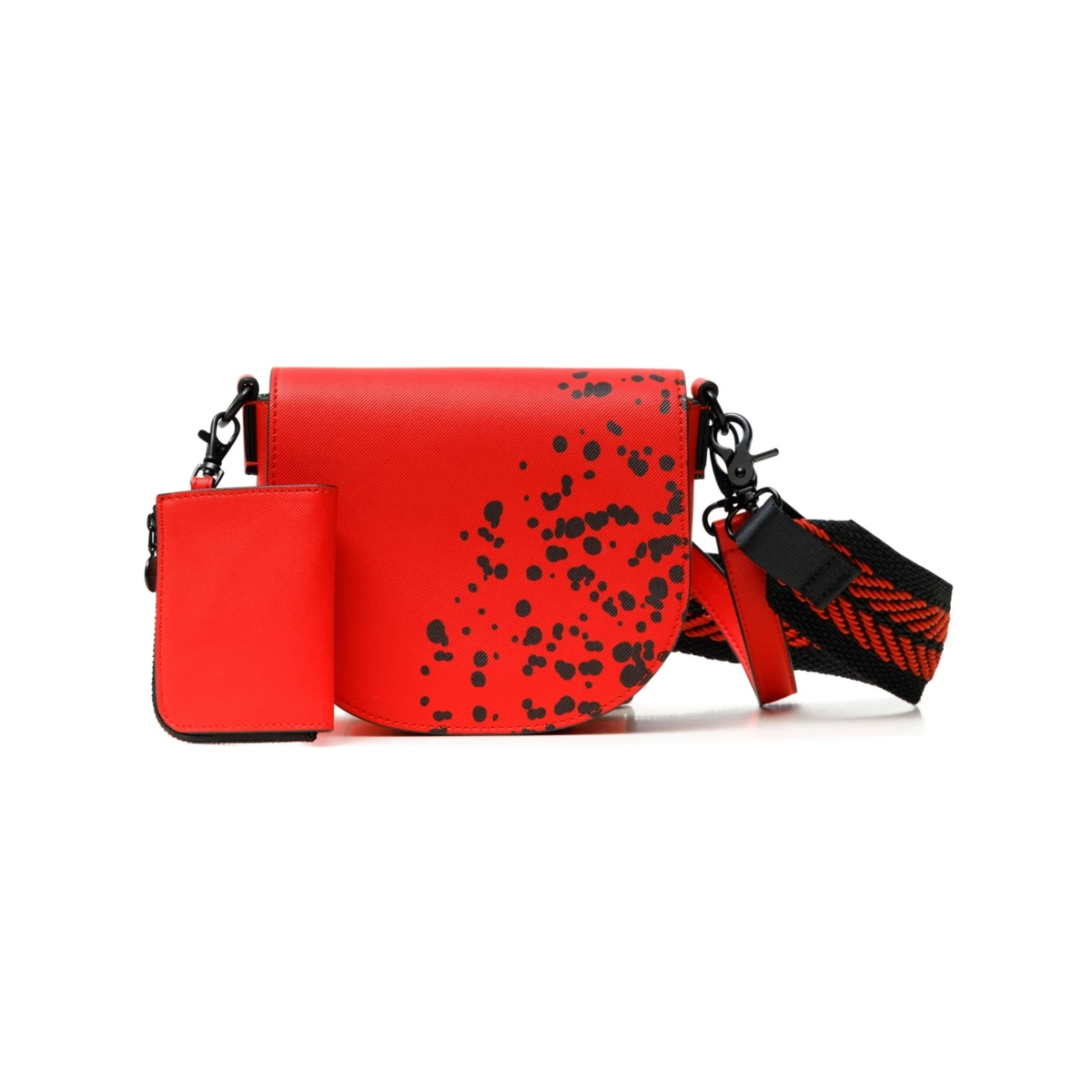 Culoarea rosu intens al acestei genti de marime mica este un punct de atractie pentru ochi. Compartimentul principal in care pot fi depozitate cele mai importante obiecte necesare se inchide cu clapeta si buton magnetic. Are inclusa un portfard mic, detasabil printr-o carabiniera. Cele doua curele pentru umar, de diferite latimi sunt reglabile si detasabile.
