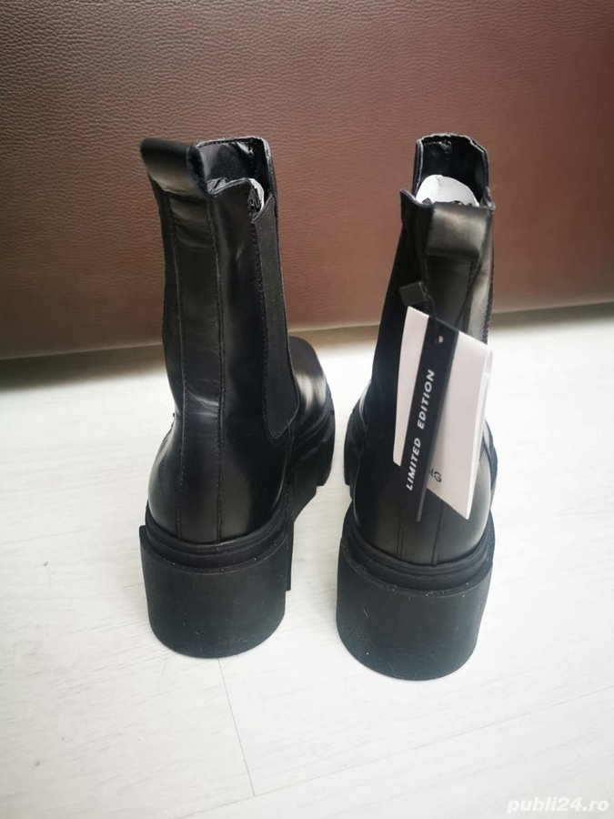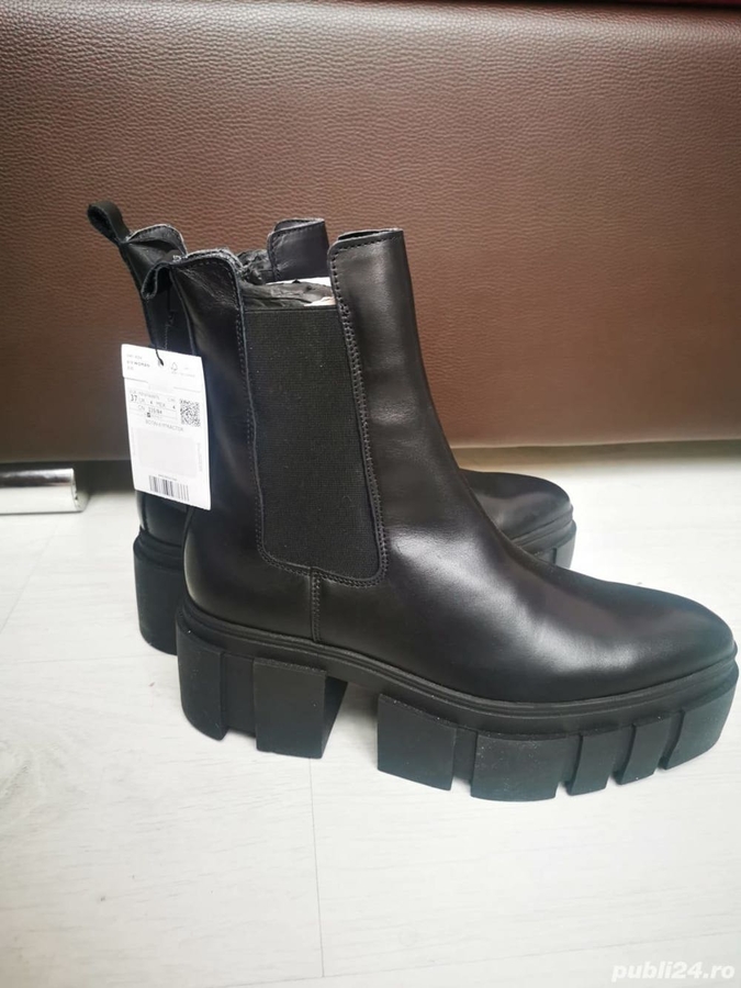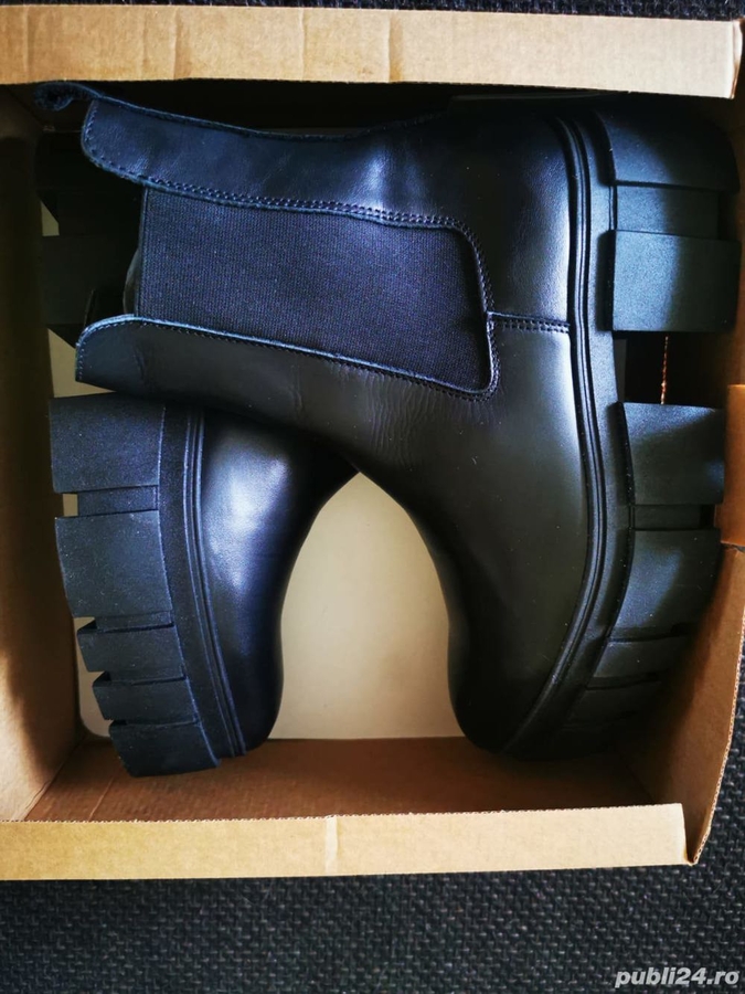 Material: Piele naturala. Tipul talpii platforma. Marime 37, stare noi, cu eticheta, in cutie, culoare negru, predare personala in Bucuresti, nu accept schimburi