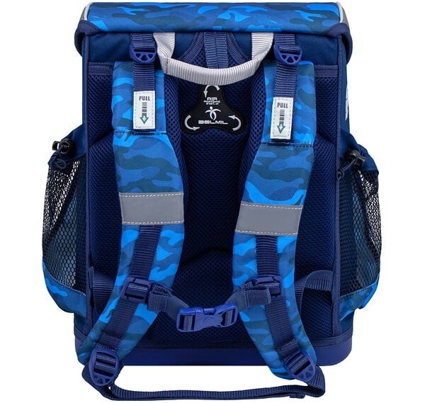 Acest model este prevazut cu o mini centura la nivelul pieptului pentru a asigura stabilitatea ghiozdanului pe umeri.