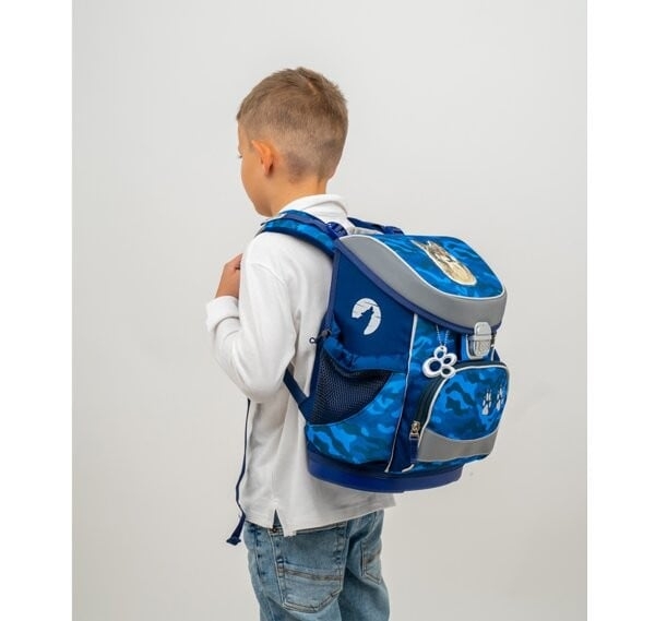 Cusaturile intarite si baza ghiozdanului din plastic confera stabilitate si rezistenta la uzura.