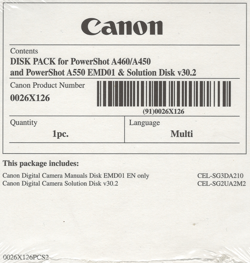 Ofer gratuit pachet original cu 2 CD-uri pentru Canon PowerShot A450/A460. Nou sigilat cum se vede in fotografiile reale.