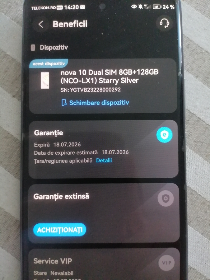 Telefonul are garantia Flip pana in primavara viitoare iar pe deasupra, vine si cu garantia originala Huawei pana in august anul viitor asa cum se poate vedea in poze.